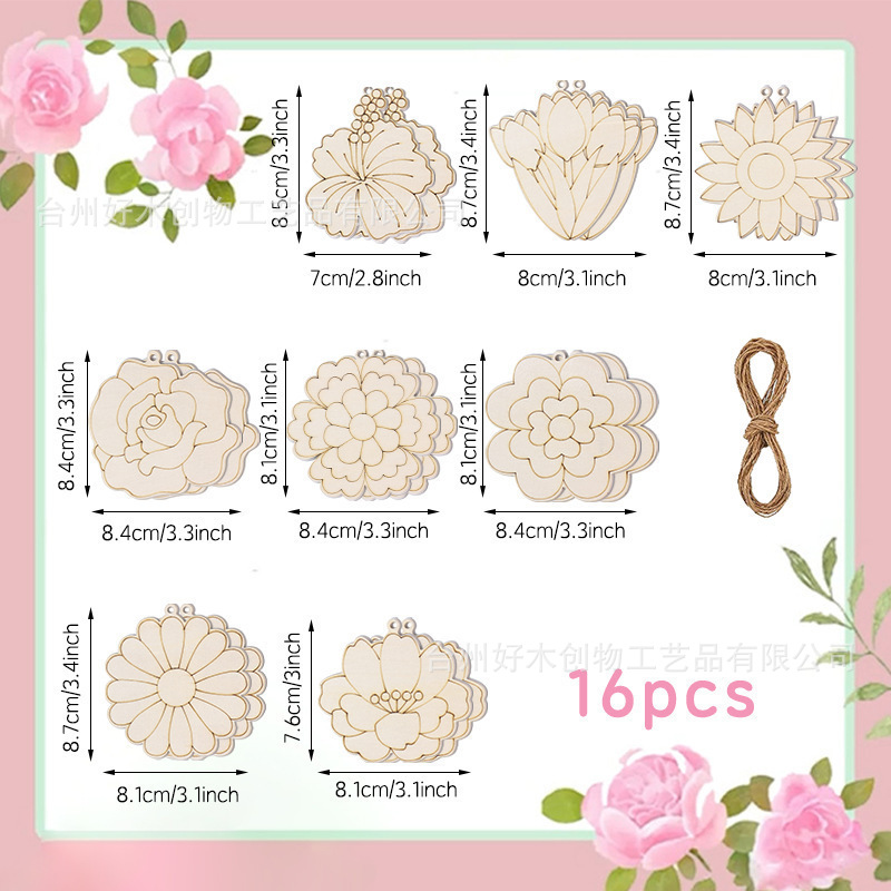 跨境热销木质花朵花卉花片儿童DIY绘画家居挂摆件亲子绘画挂件