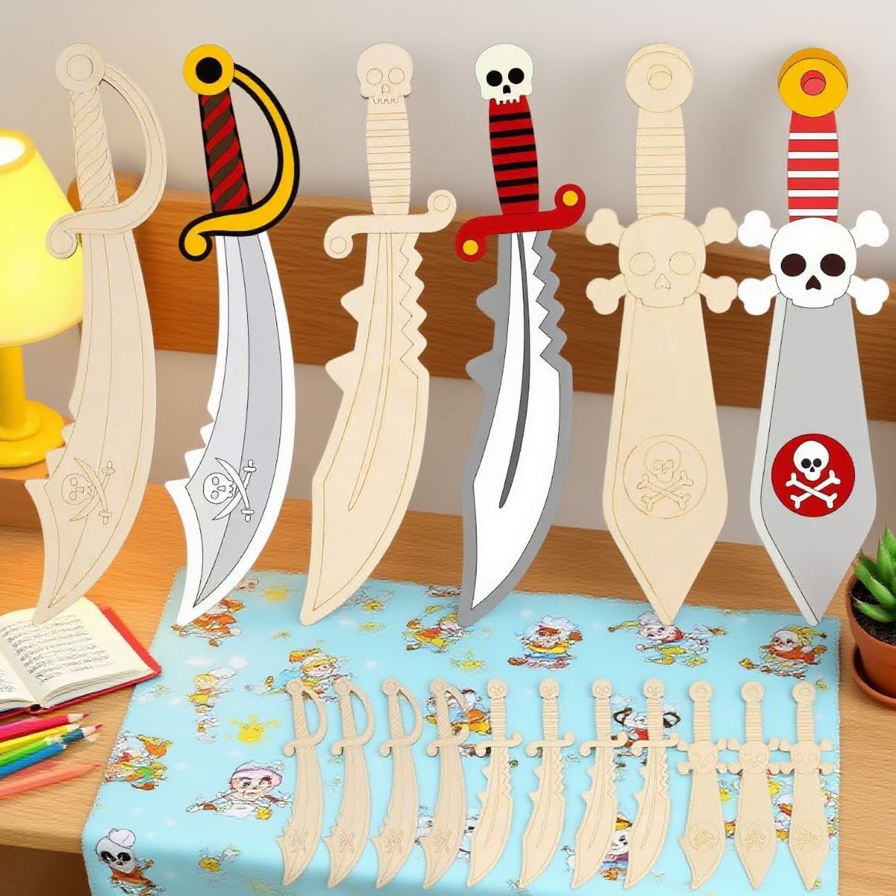 跨境木刀型小木片玩具创意手绘涂鸦儿童周岁抓周DIY彩绘益智手工