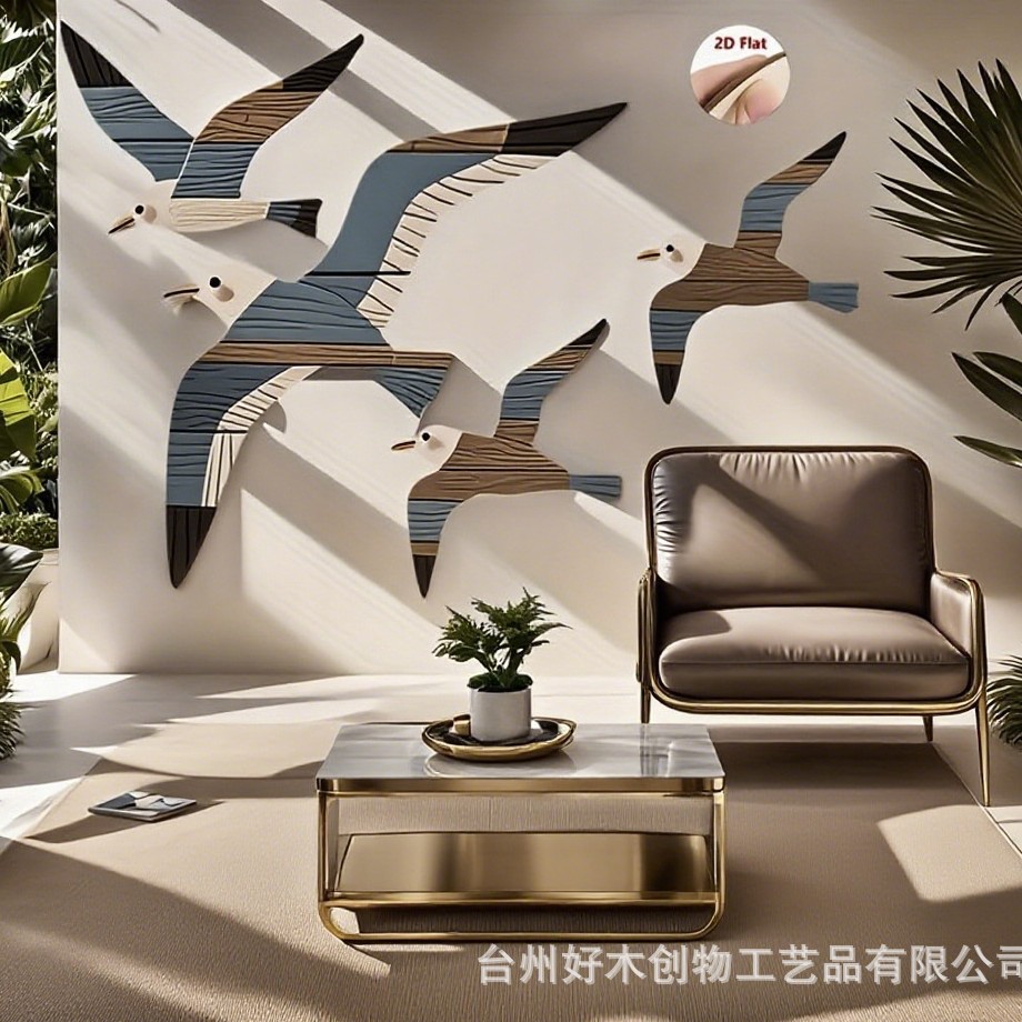 跨境批发海洋鸟类艺术花园墙壁装饰经典木制海鸥墙饰套装航海手工