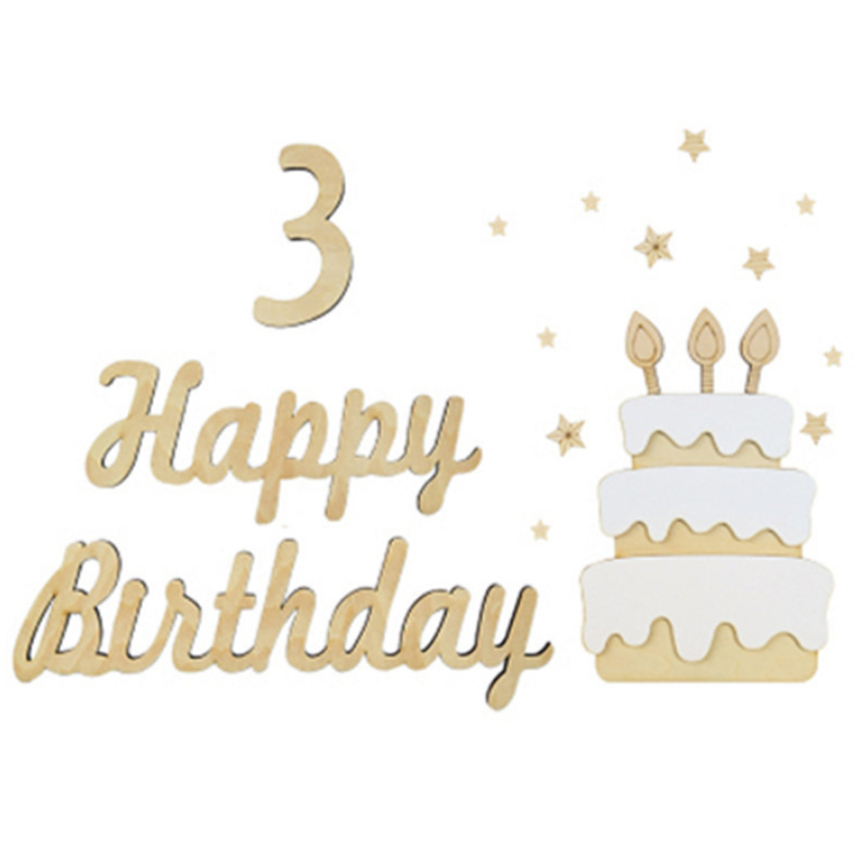 爆款简约风森系木质生日牌生日派对装饰木质字母生日英文墙贴