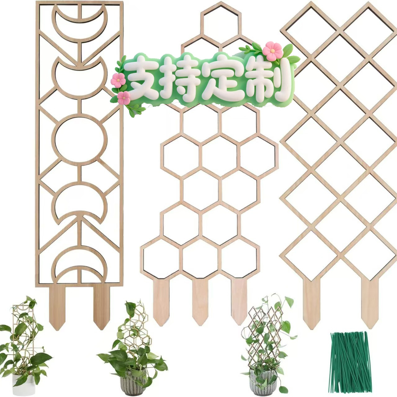 跨境藤曼木质支撑杆植物网格攀藤插花架园艺木制盆景花架装饰