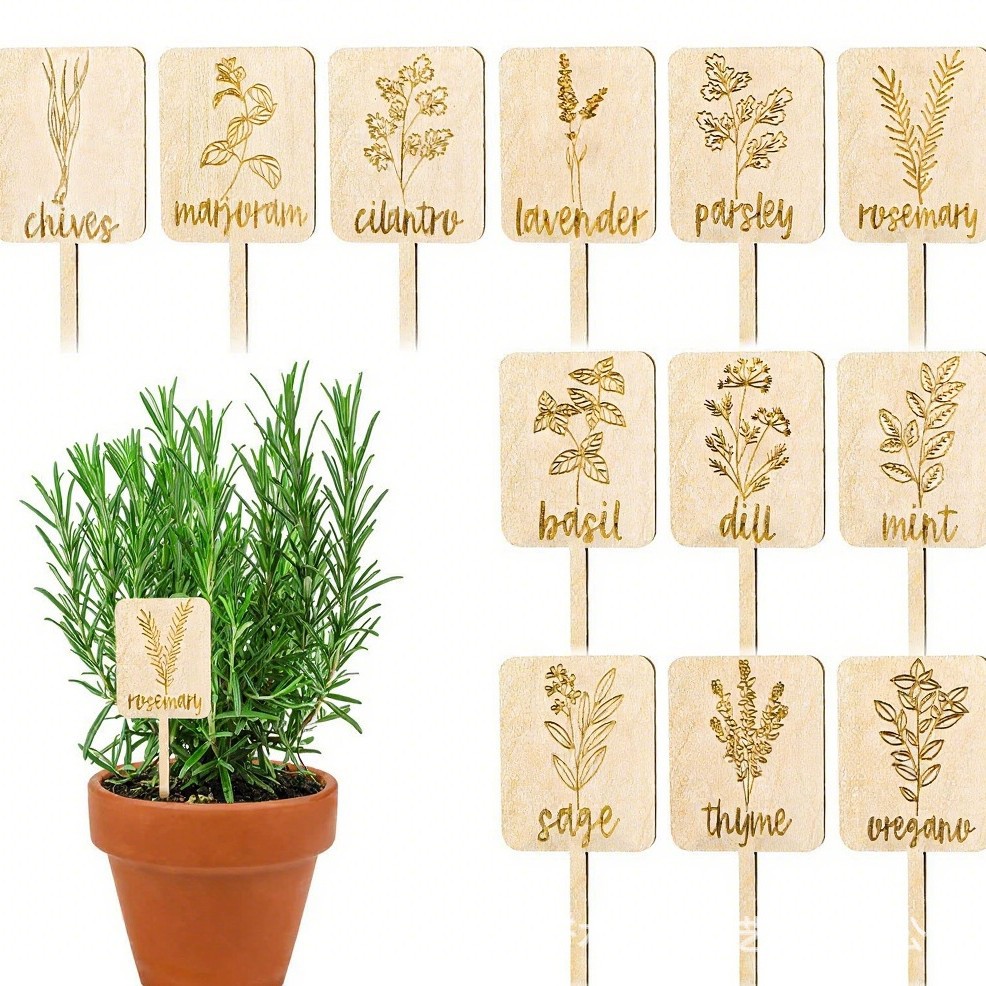现货木制草本植物标记植物标签教师节礼物植物生长木质标签雕刻
