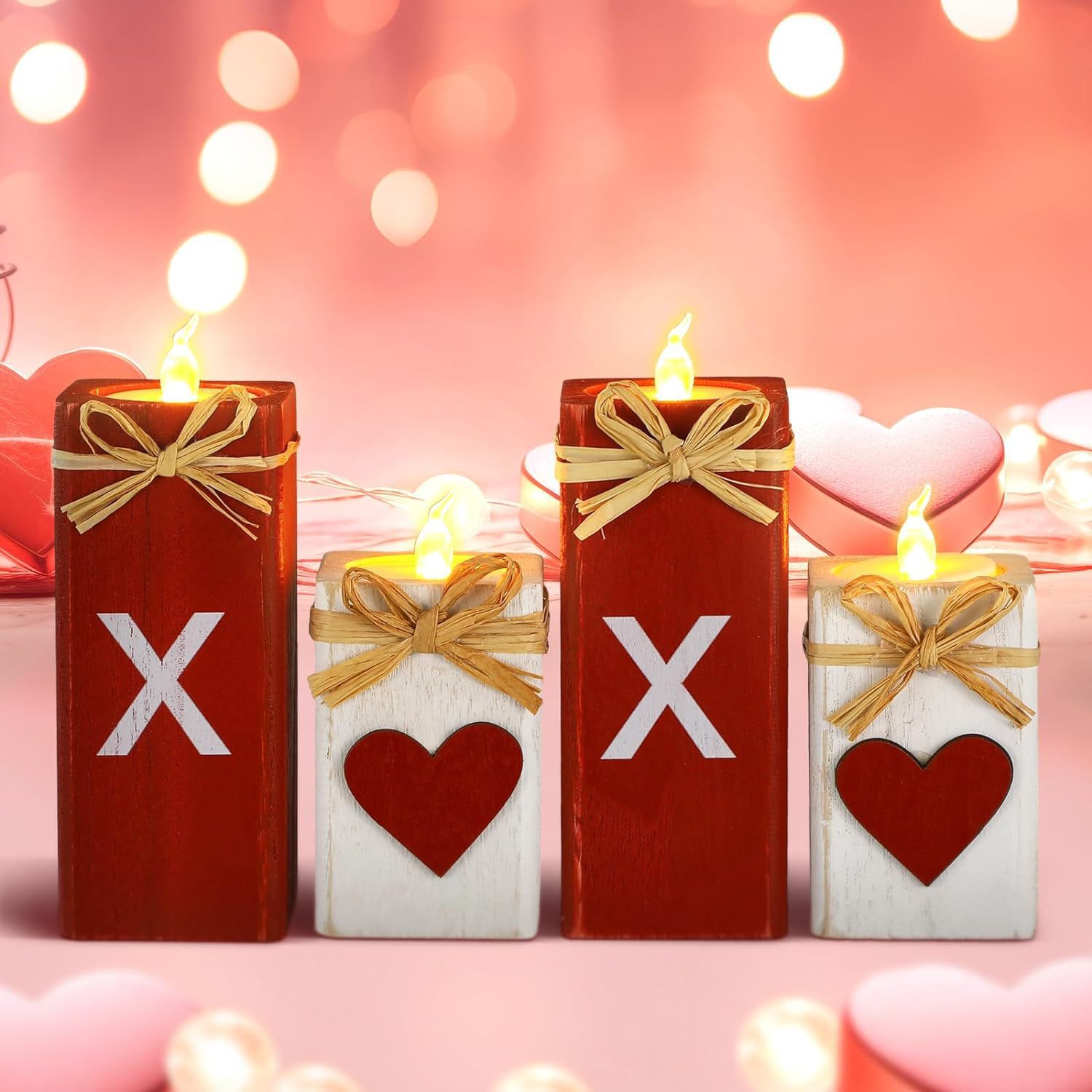 跨境新款木质心形蜡烛台木制创意婚庆装饰情人节日氛围灯桌面摆件