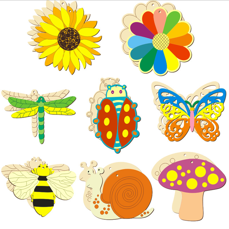 跨境创意款涂鸦昆虫形木制品小木片木质小挂件工艺品DIY彩绘儿童