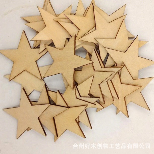 跨境原木片木制品五角星挂件木片DIY空白圣诞节日装饰星星木片