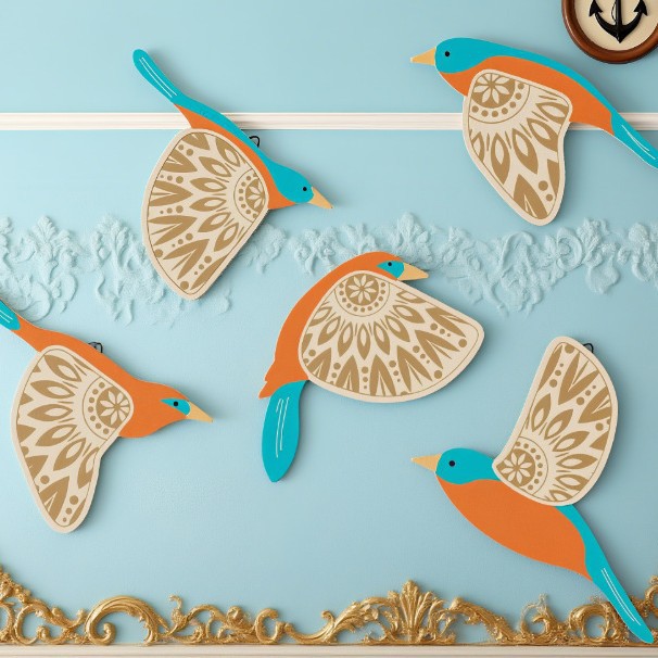 跨境亚马逊爆款5件木质飞行鸟墙壁装饰鸟类爱好者客厅家居装饰
