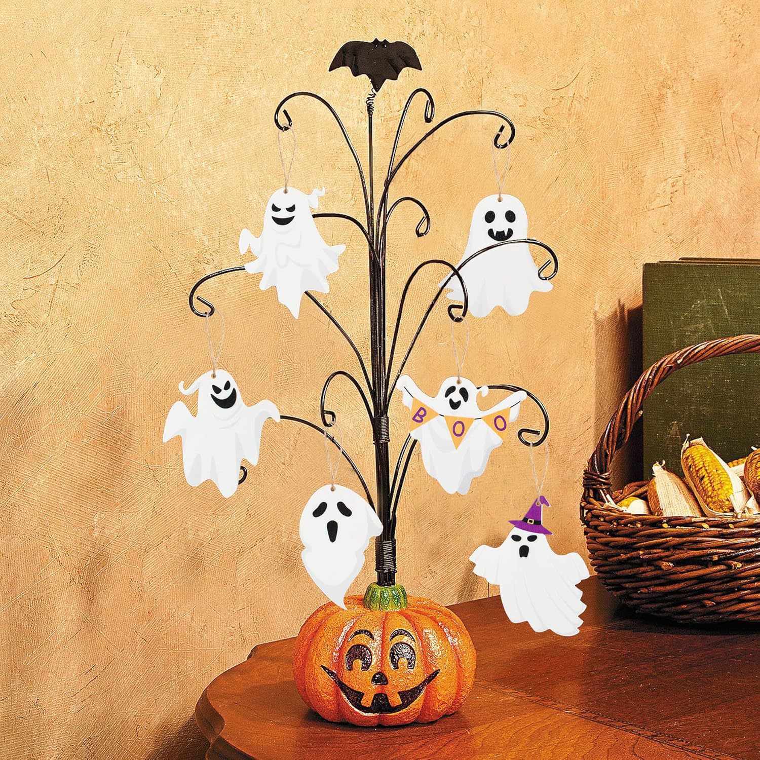 跨境爆款万圣节木制装饰品可爱幽灵树装饰哥特式恐怖悬挂装饰品