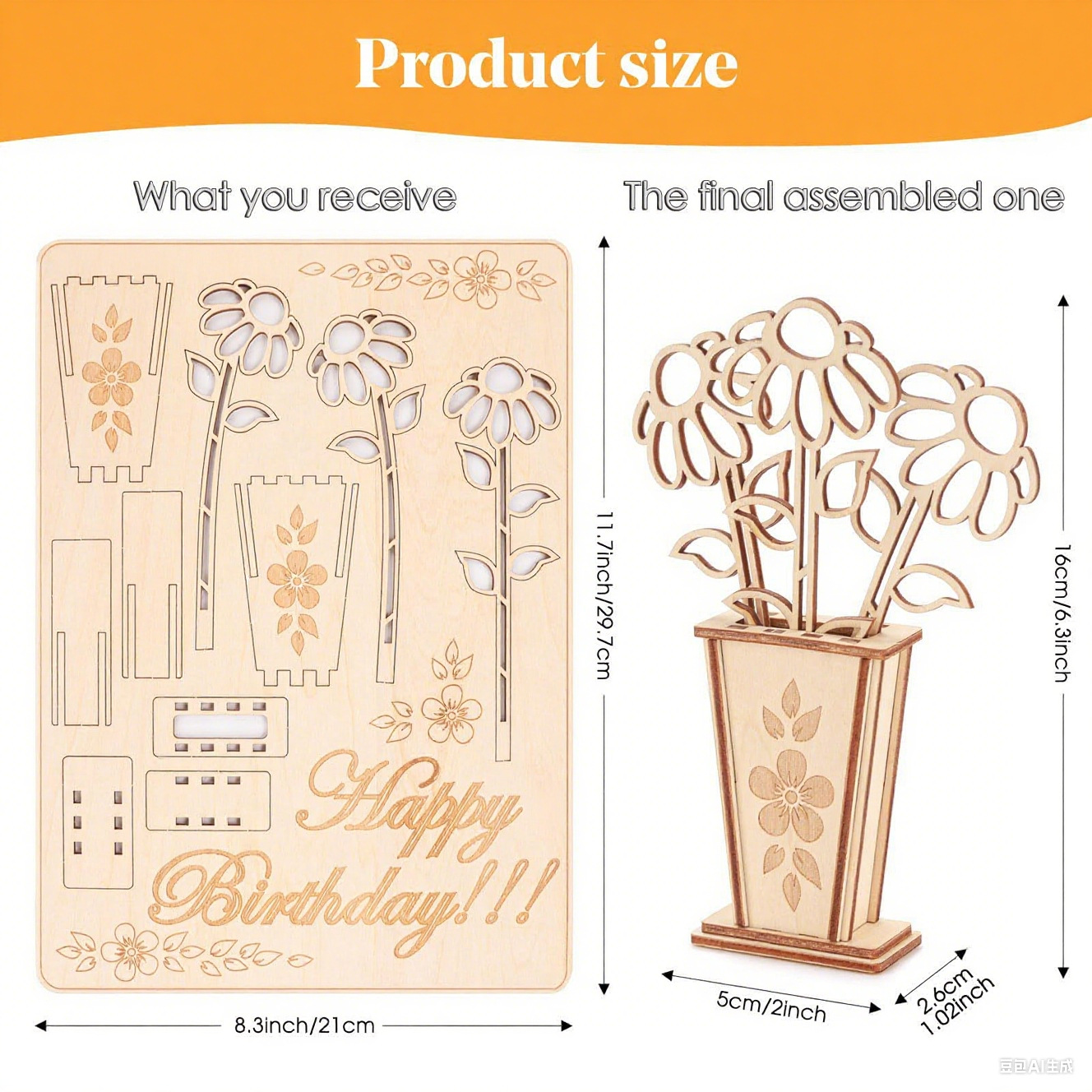 跨境木质3D花束卡片木制拼图生日礼品卡 DIY花卡创意礼物家居装饰