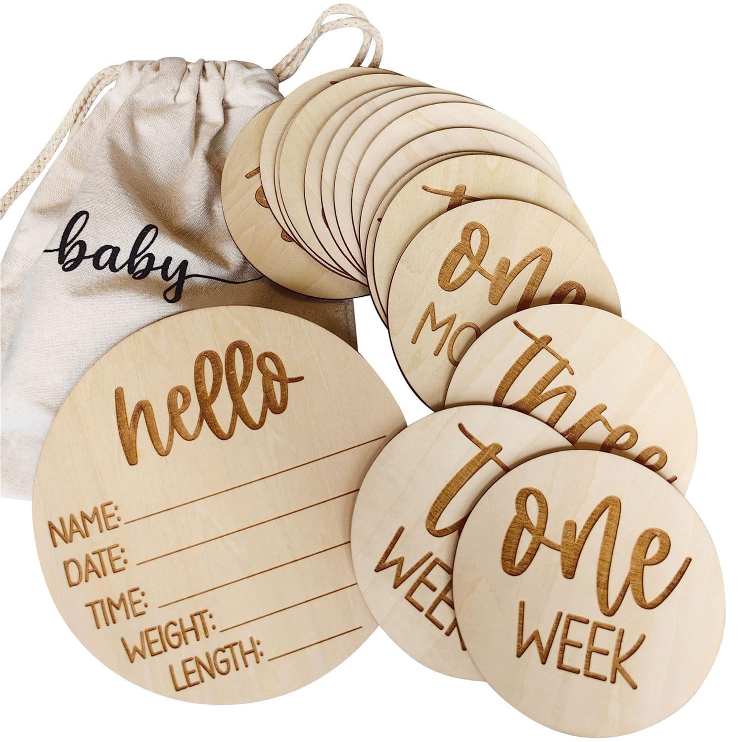 跨境激光雕刻木质里程碑卡货源木质里程碑木片婴儿新生儿拍照道具