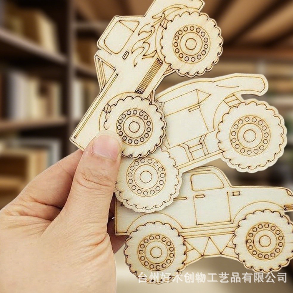 跨境电商热销DIY木质汽车越野车手工DIY彩绘木片装饰摆件玩具益智