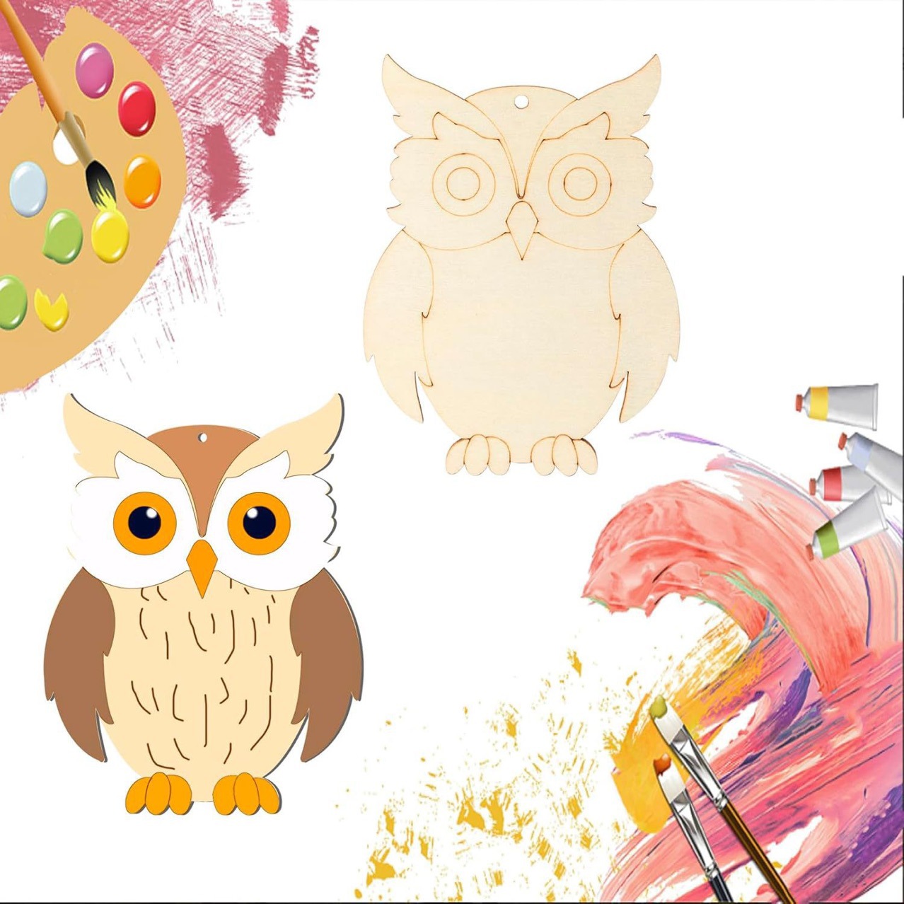 猫头鹰装饰木板diy材料幼儿园儿童涂鸦木片小挂件木质工艺品手工