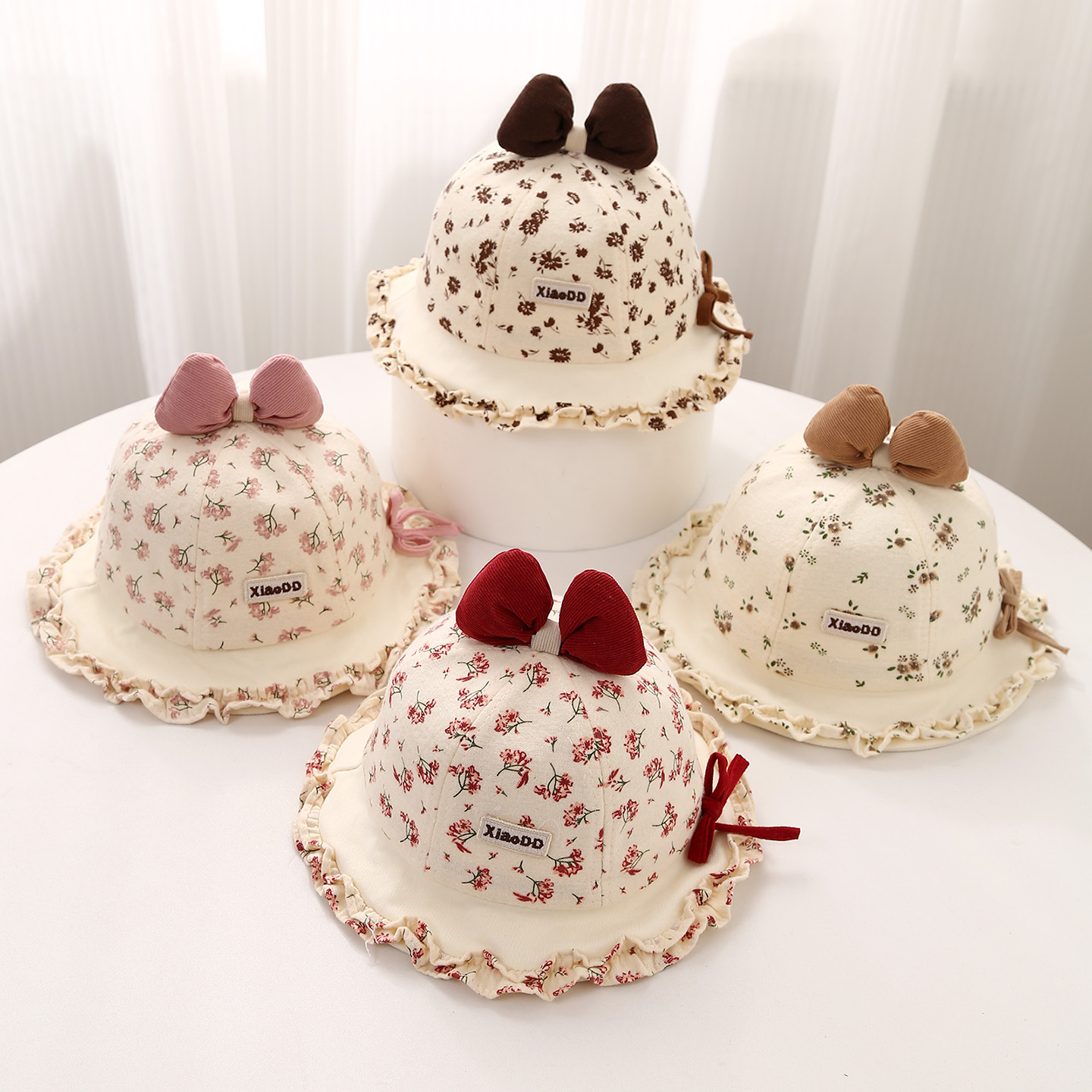 婴儿帽子盆帽宝宝大檐秋季新款太阳帽碎花花边遮阳防晒帽25款