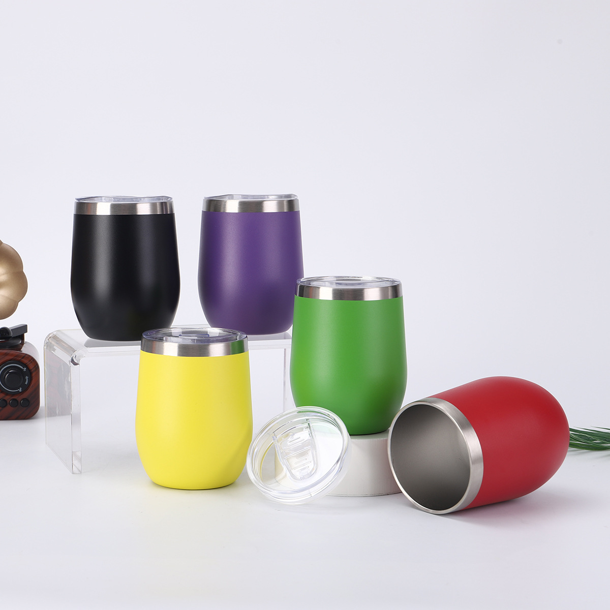 跨境直供12oz蛋壳杯304 不锈钢双层真空喷塑鸡蛋U型杯创意红酒杯