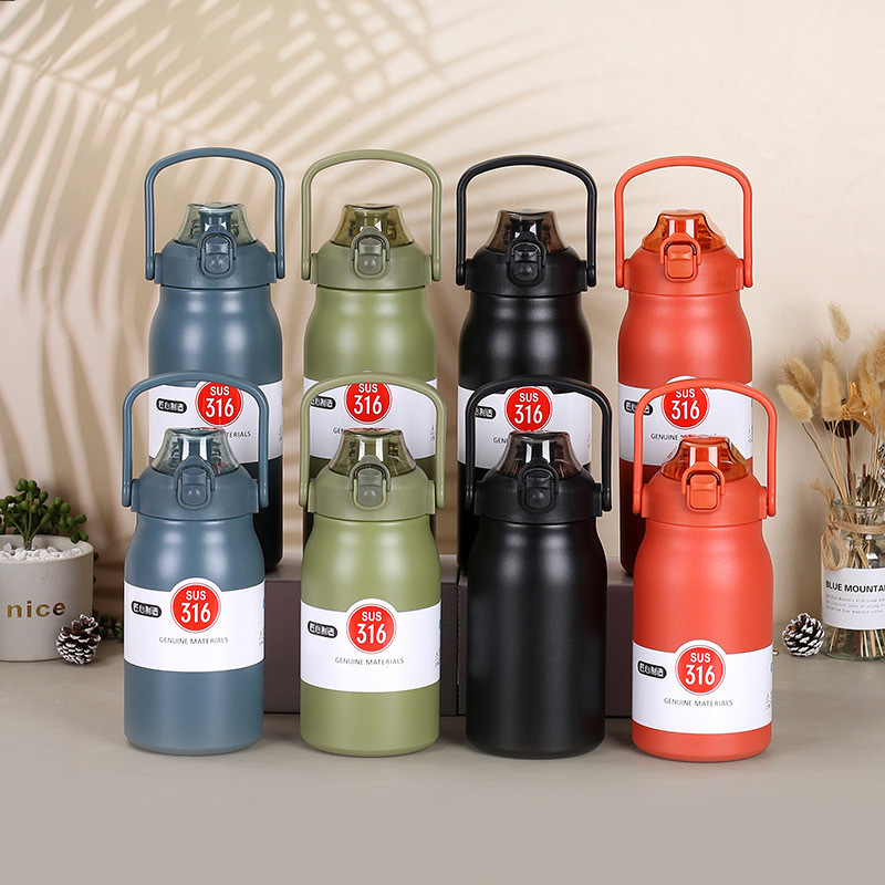 跨境爆款大容量手提保温杯316不锈钢弹盖款手提壶带吸管户外水杯