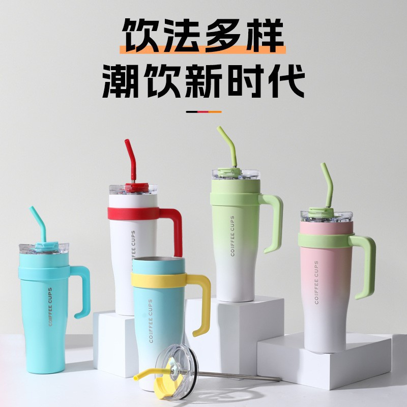 316不锈钢保温杯茶提手吨吨杯便捷手提吸管杯户外运动水杯大容量