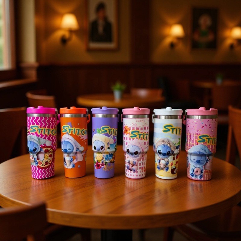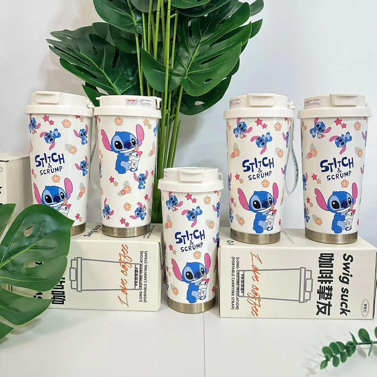316不锈钢保温杯高颜值大容量女生吸管杯史迪仔新款水杯车载咖啡