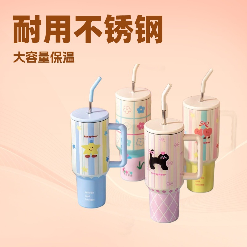爆款拉布布汽车杯304不锈钢大容量手柄吸管保温杯车载保冷冰霸杯