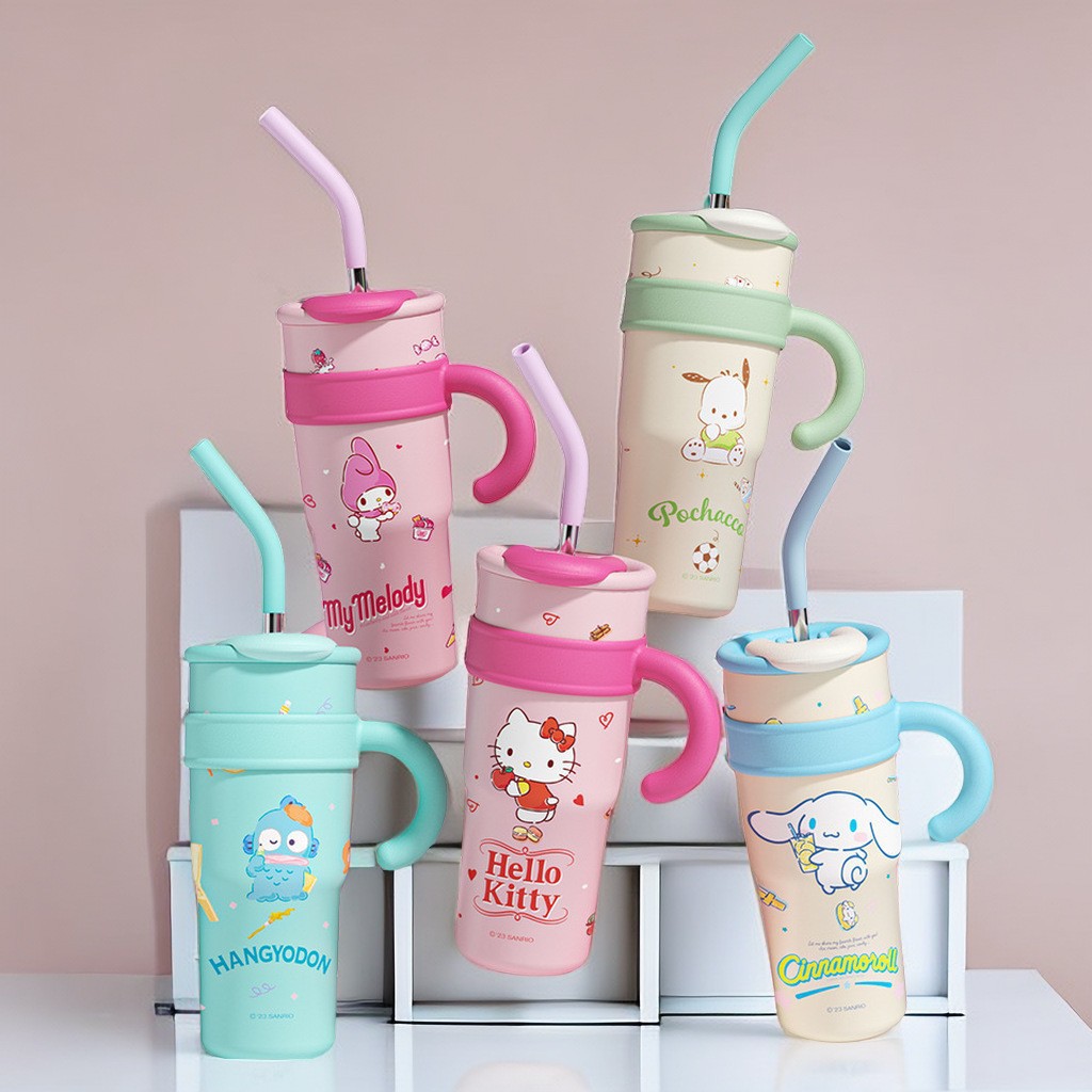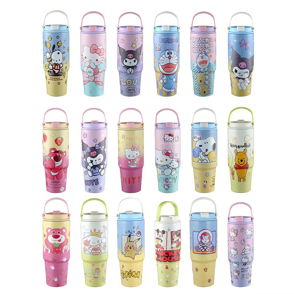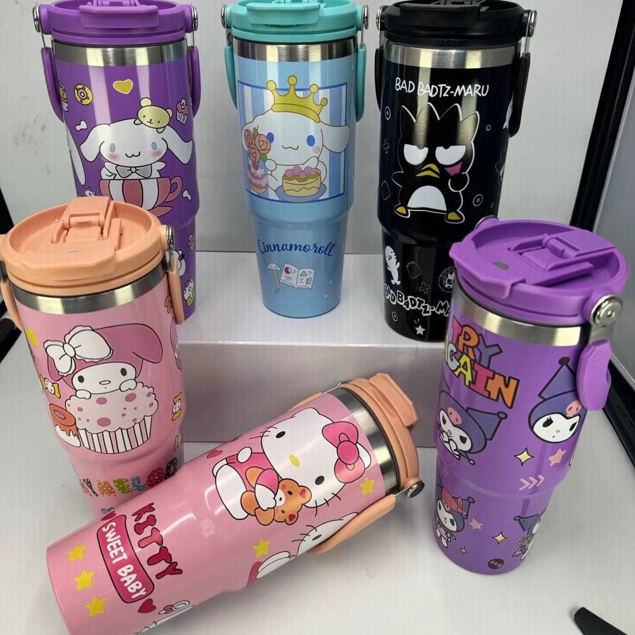 外贸新款三丽鸥保温杯巨无霸杯大容量带手柄吸管水杯汽车杯子批发