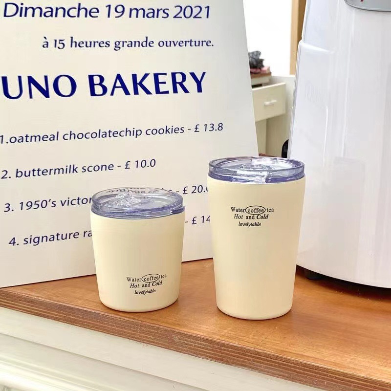 厂家直销360ml双层米黄304不锈钢咖啡杯8oz牛奶杯韩式保温随行杯