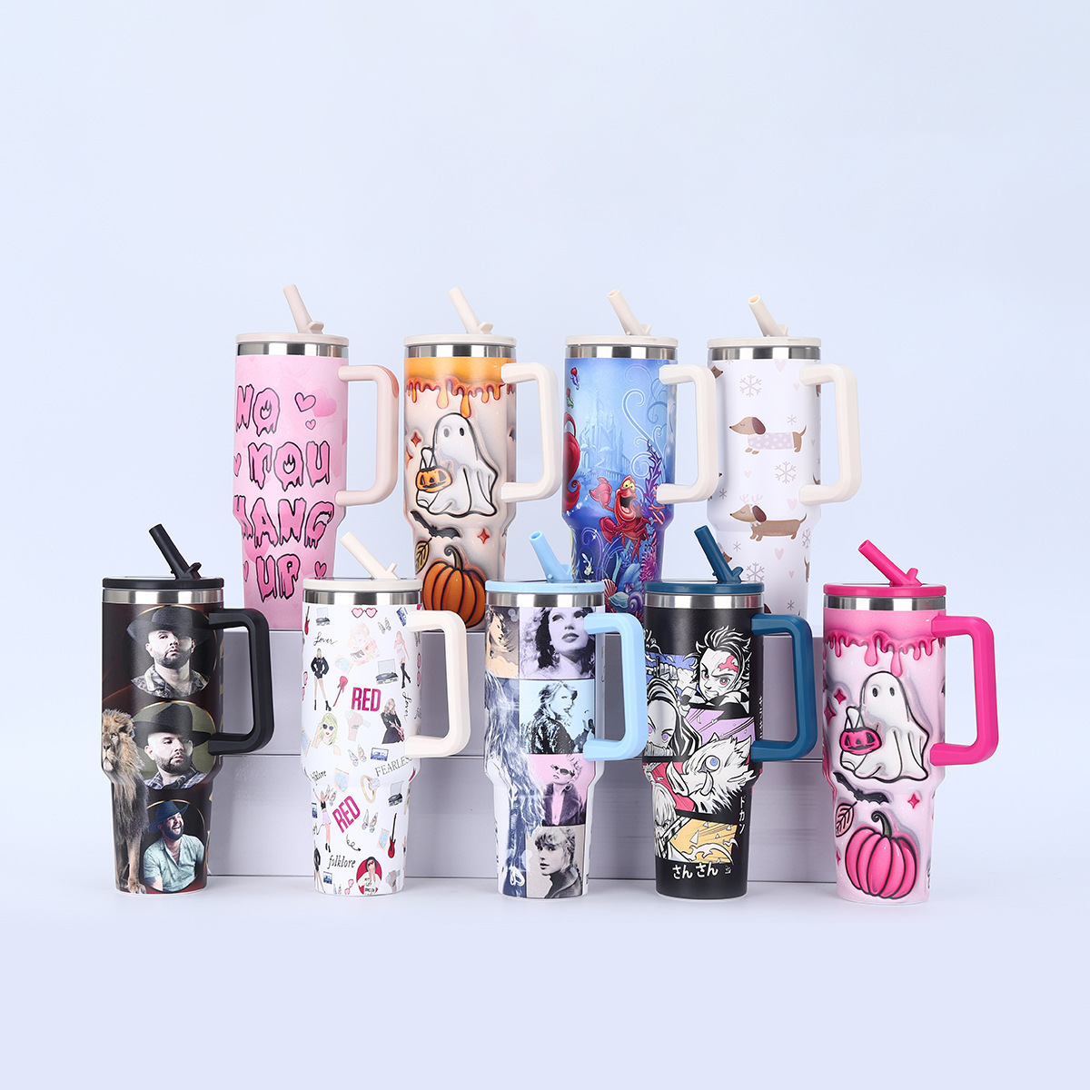 手提壶卡通UV打印3D吸管杯便携保温保冷水杯便携式