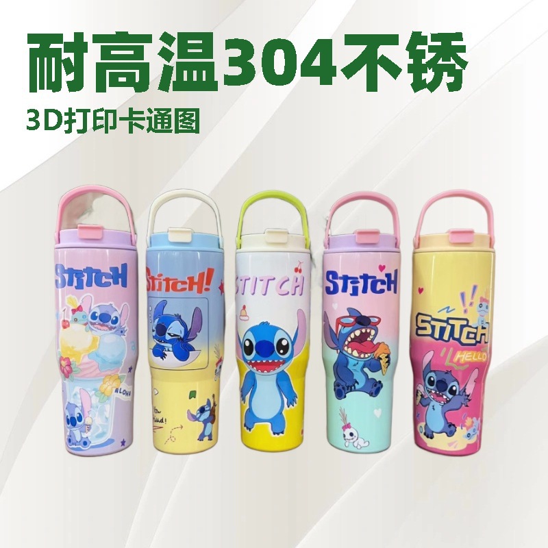 跨境新款304不锈钢保温杯史迪仔卡通动漫冰霸杯户外便携汽车杯子