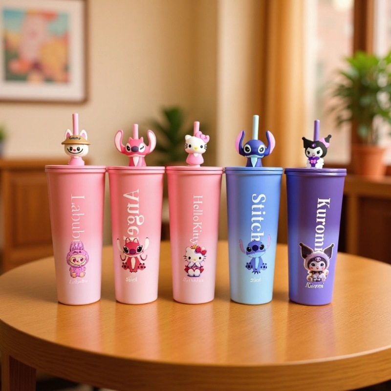 新款卡通图案保温杯304不锈钢双层真空女系2025高颜值公仔吸管杯