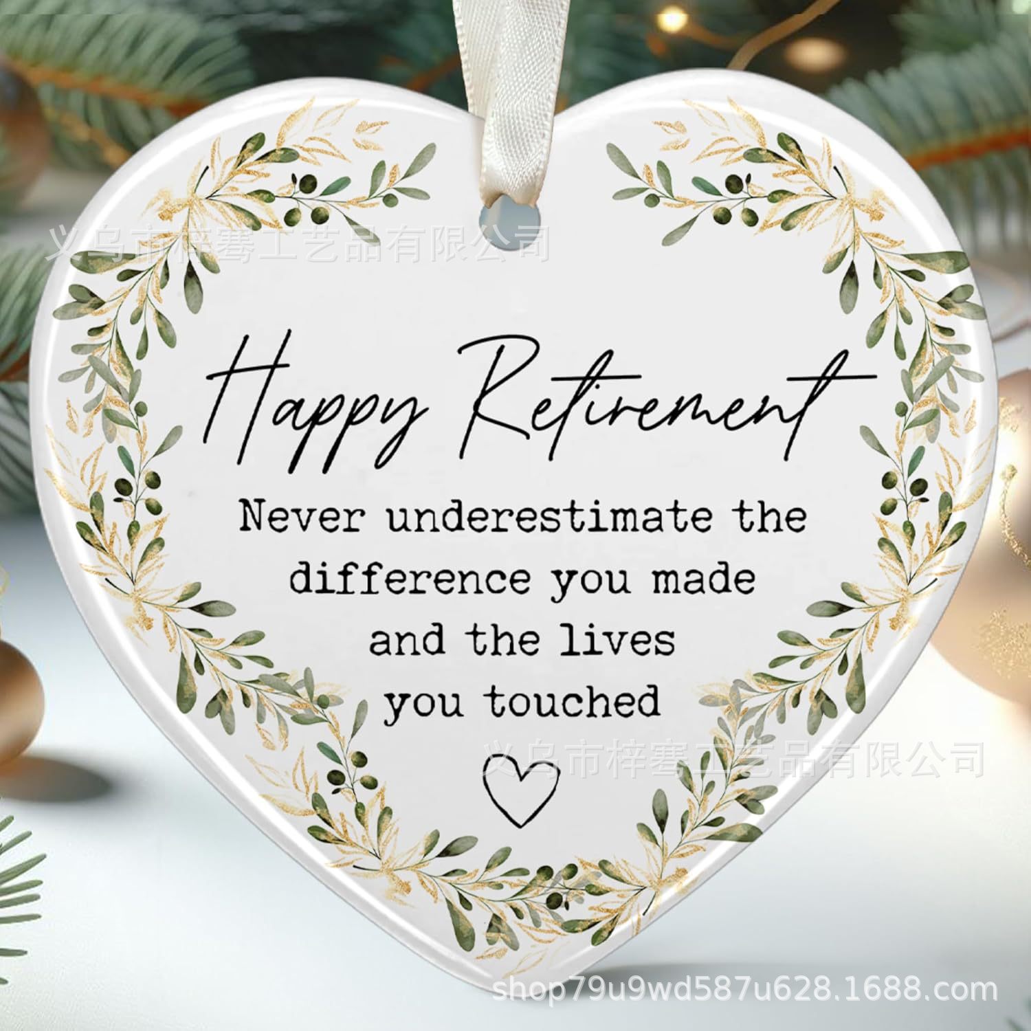 跨境亚马逊新款陶瓷退休挂件圣诞吊件心形单双面印刷送人装饰品