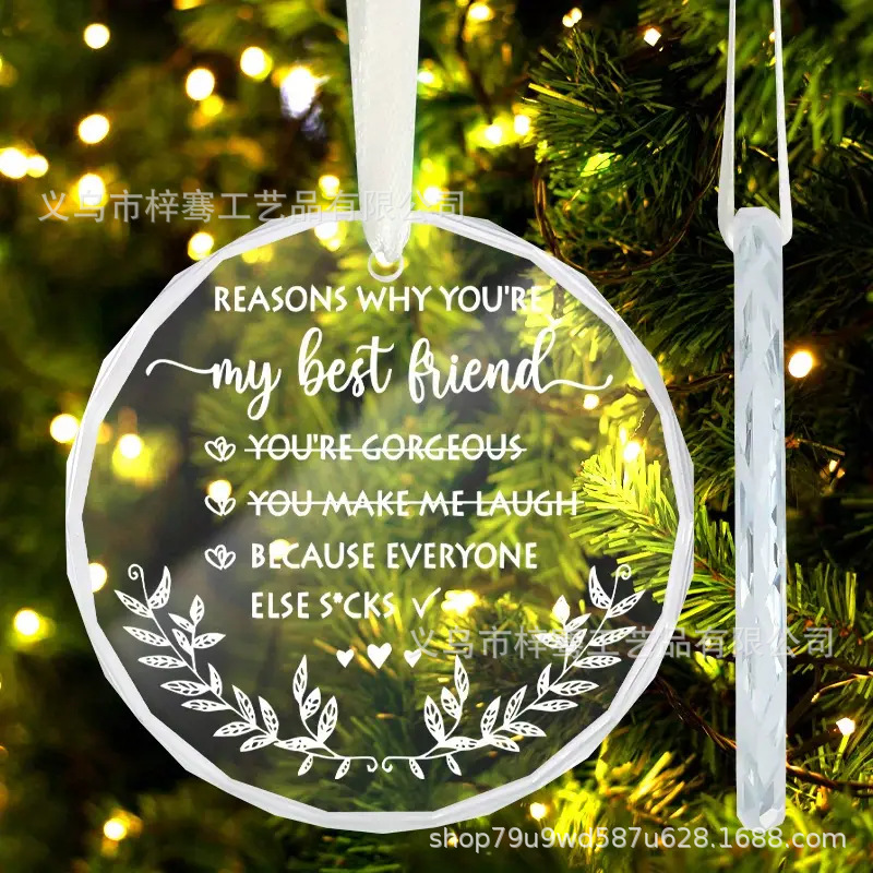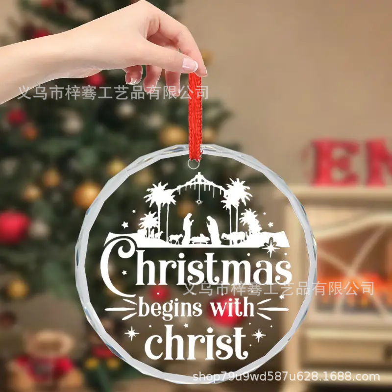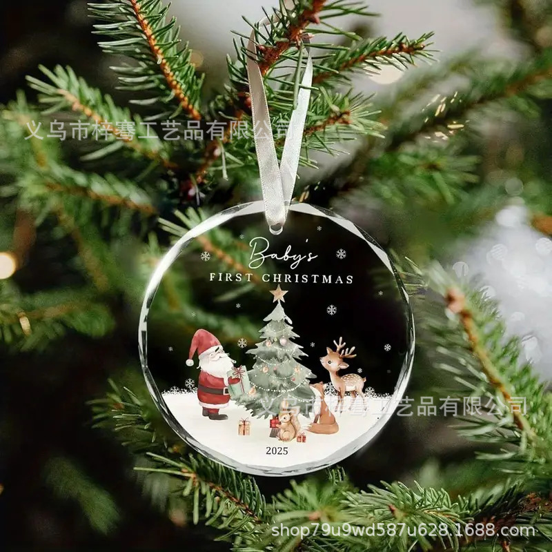 跨境新品2025年圆形水晶玻璃挂件圣诞节送邻居亲戚朋友装饰品礼物