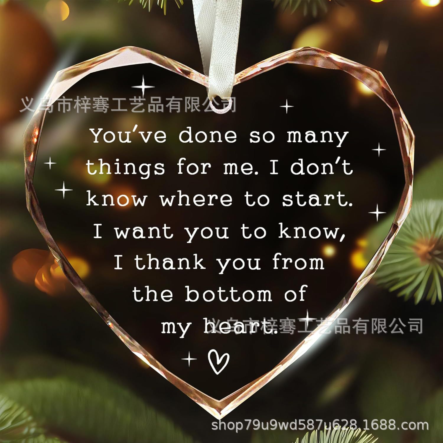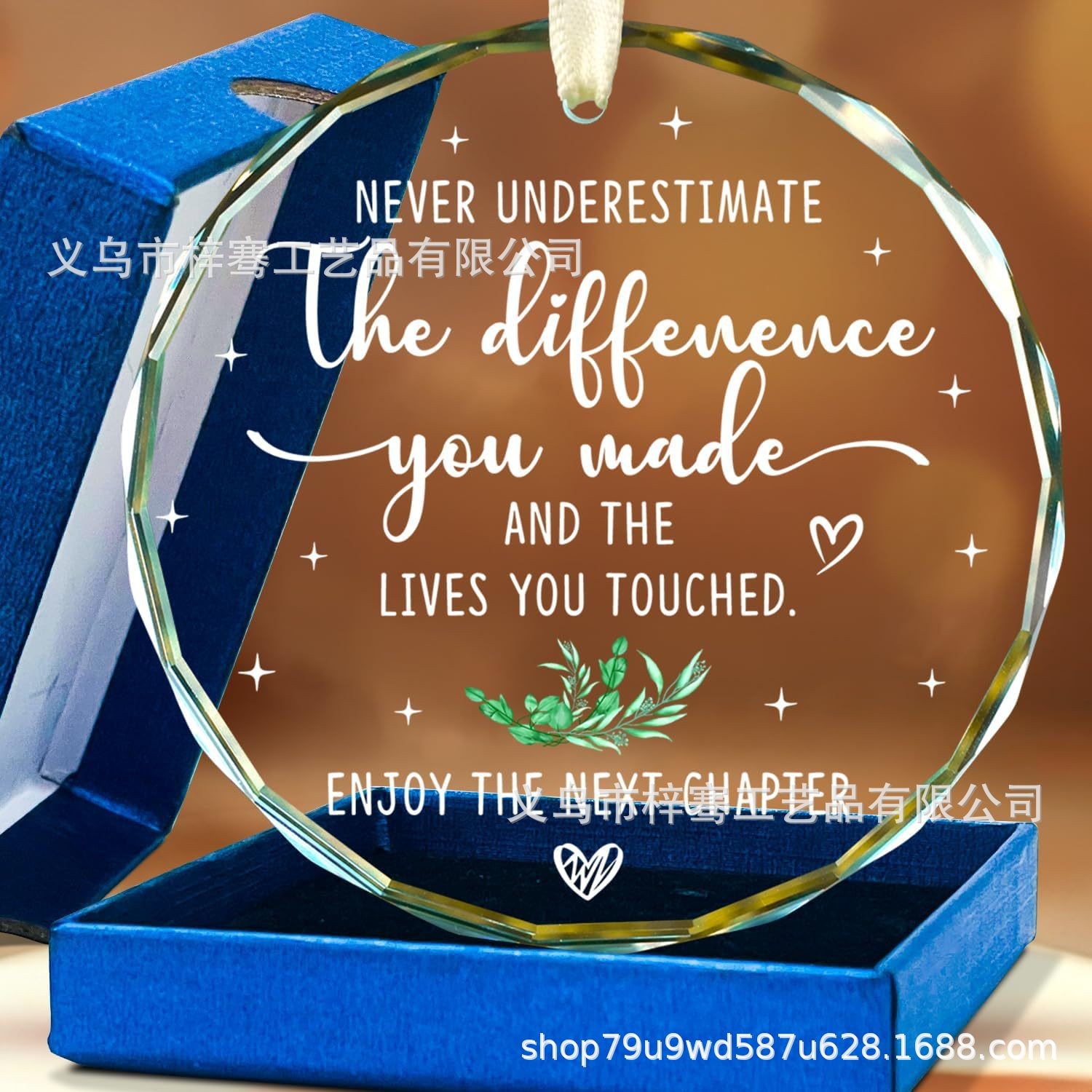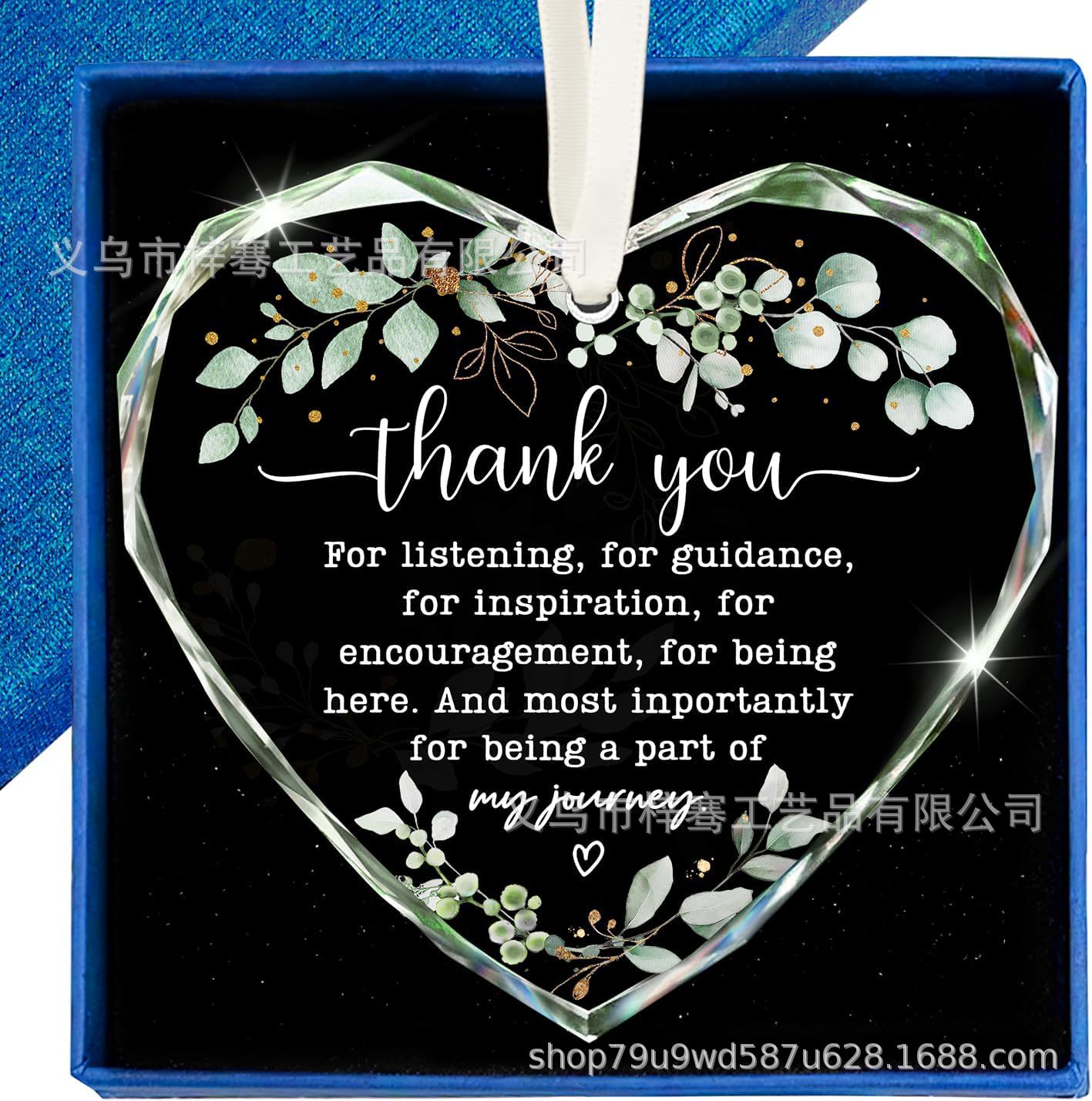 亚马逊新款退休礼物水晶玻璃心形挂件圣诞节送朋友同事感谢装饰品