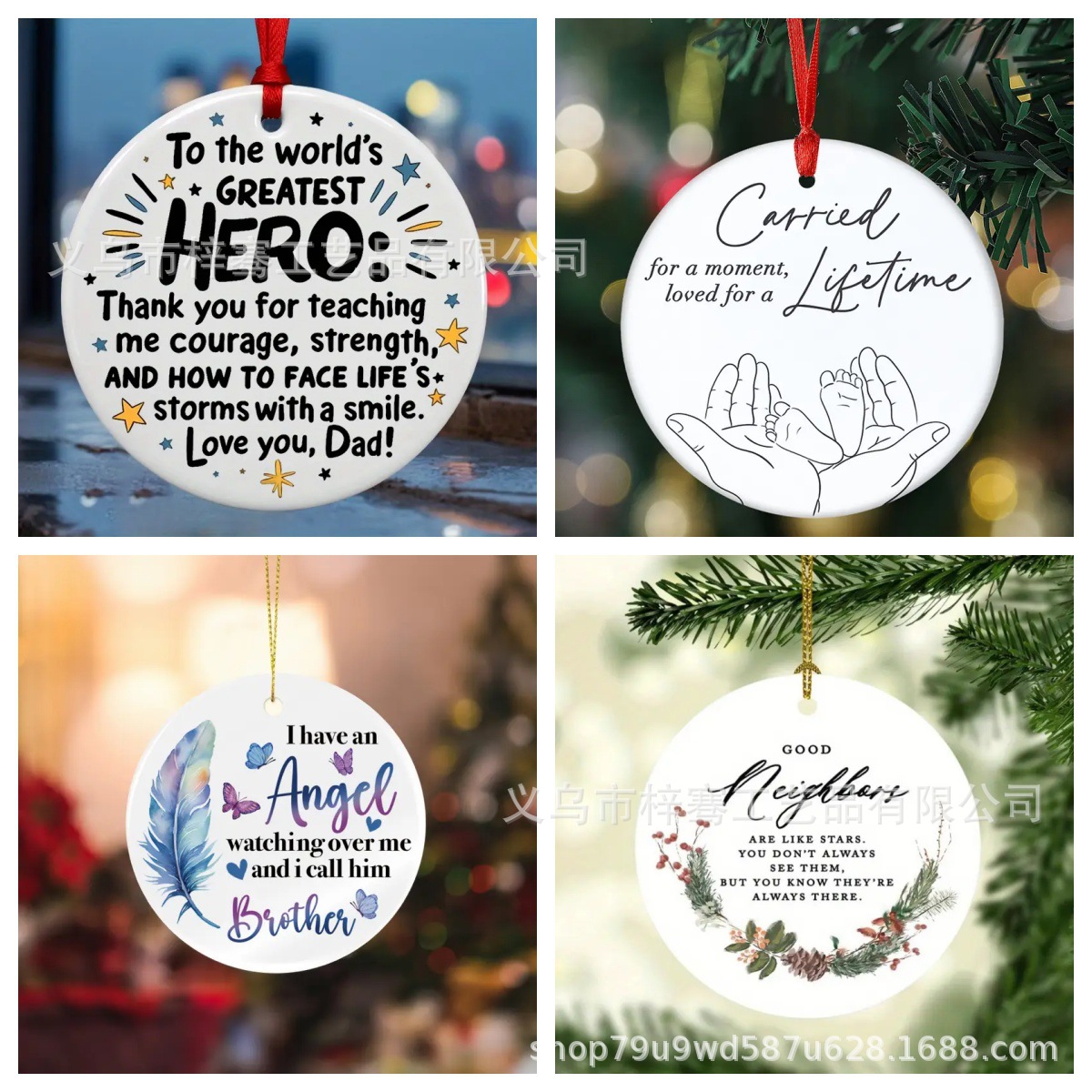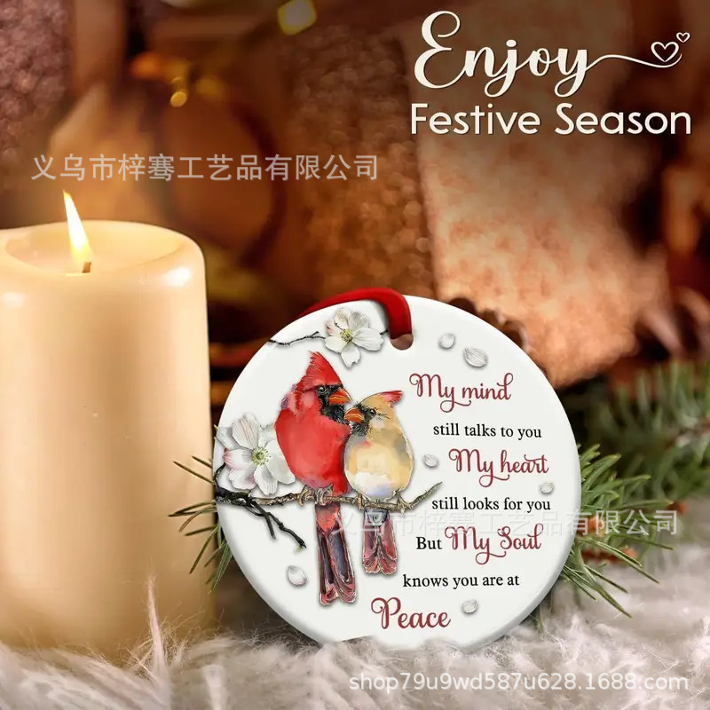 跨境新品圆形陶瓷装饰纪念品圣诞节陶瓷挂件送朋友家人最佳礼物