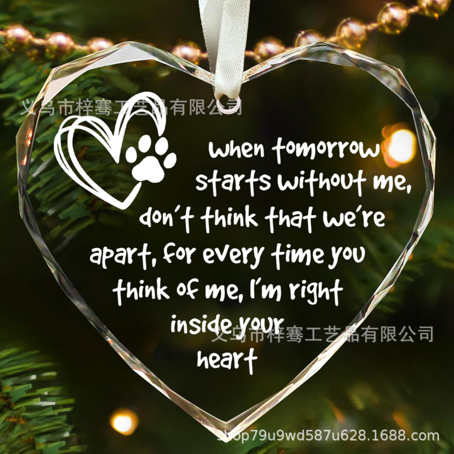 亚马逊新款爱心玻璃挂件圣诞节圣诞树装饰品宠物纪念礼品挂饰批发