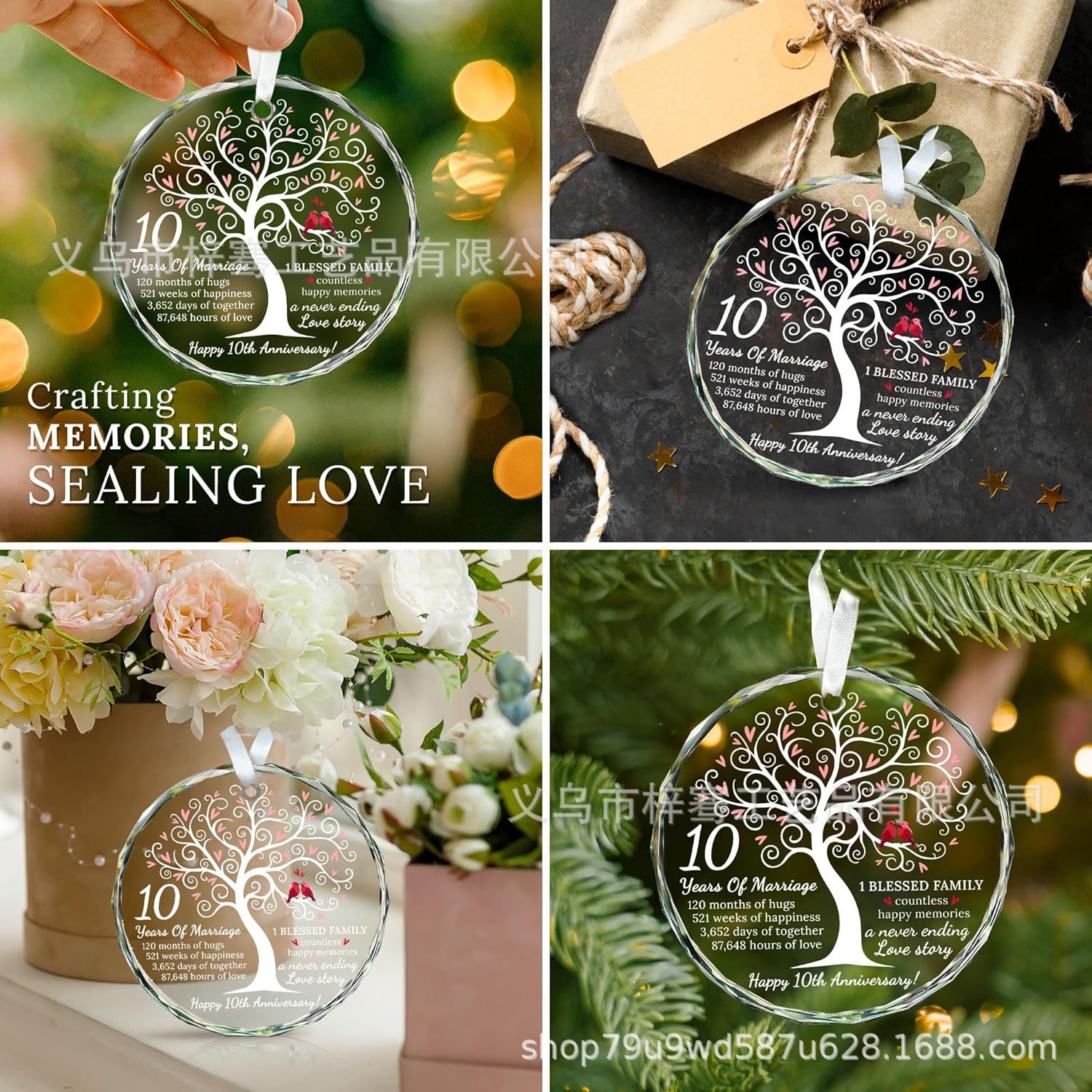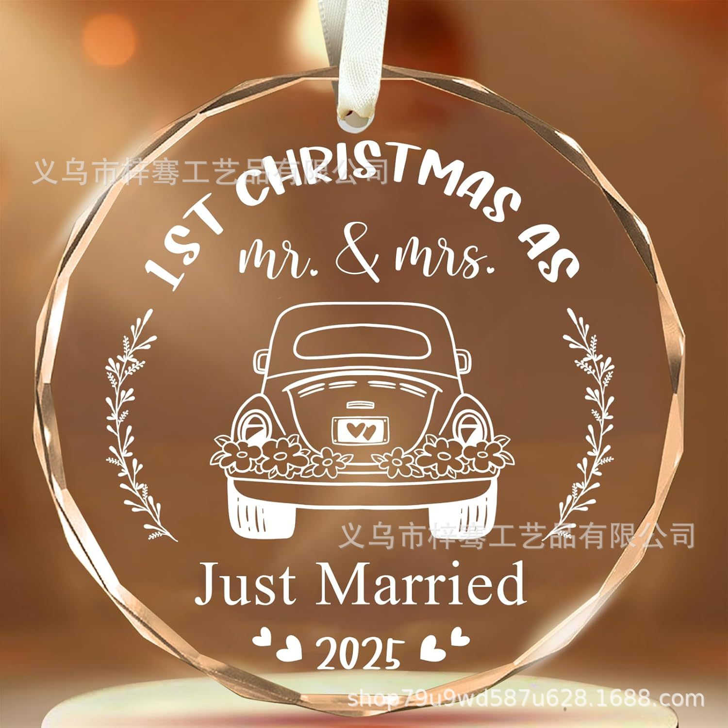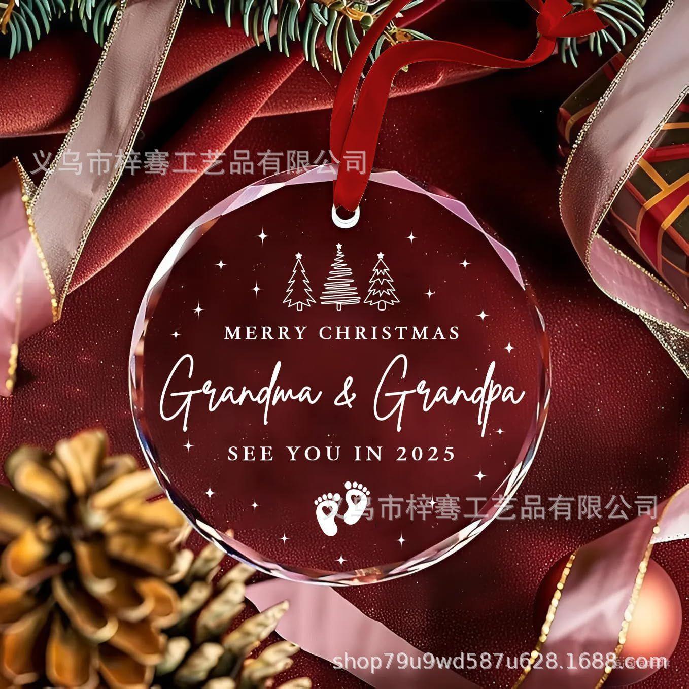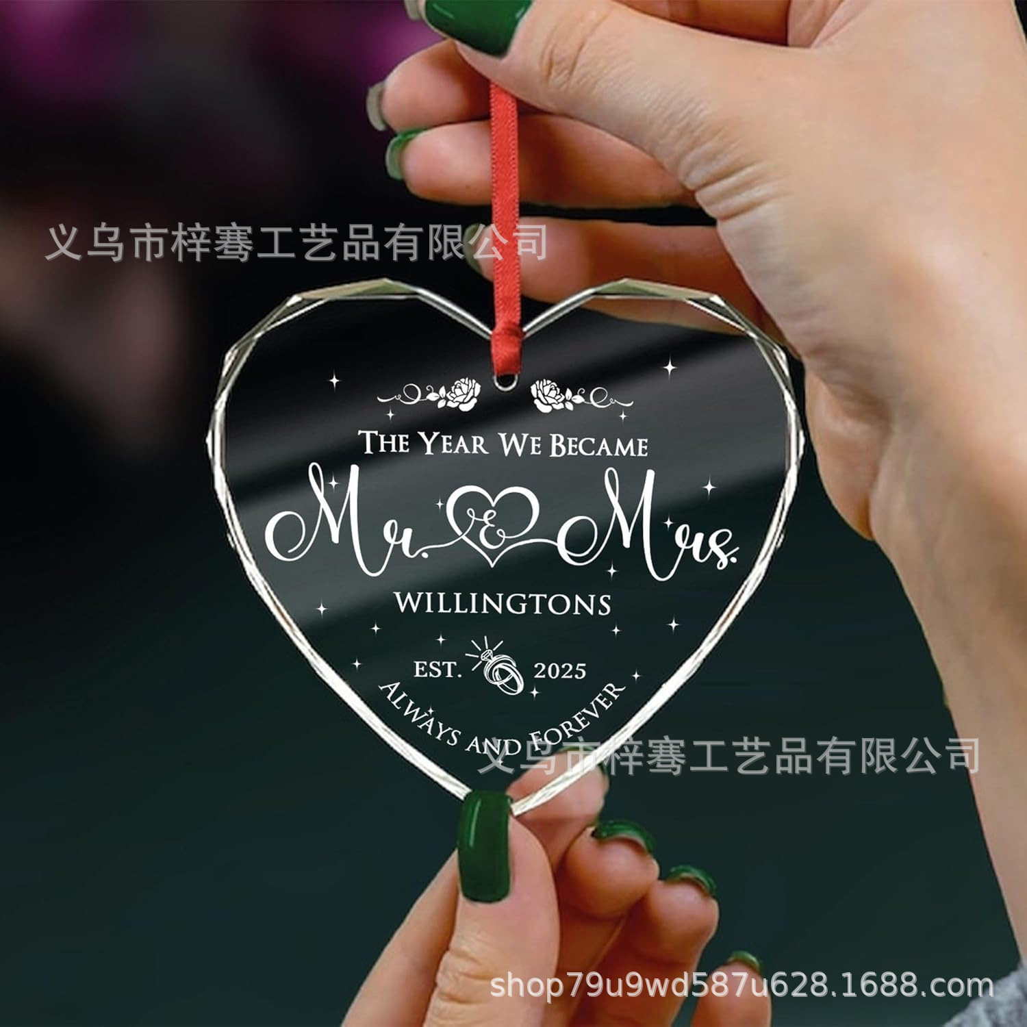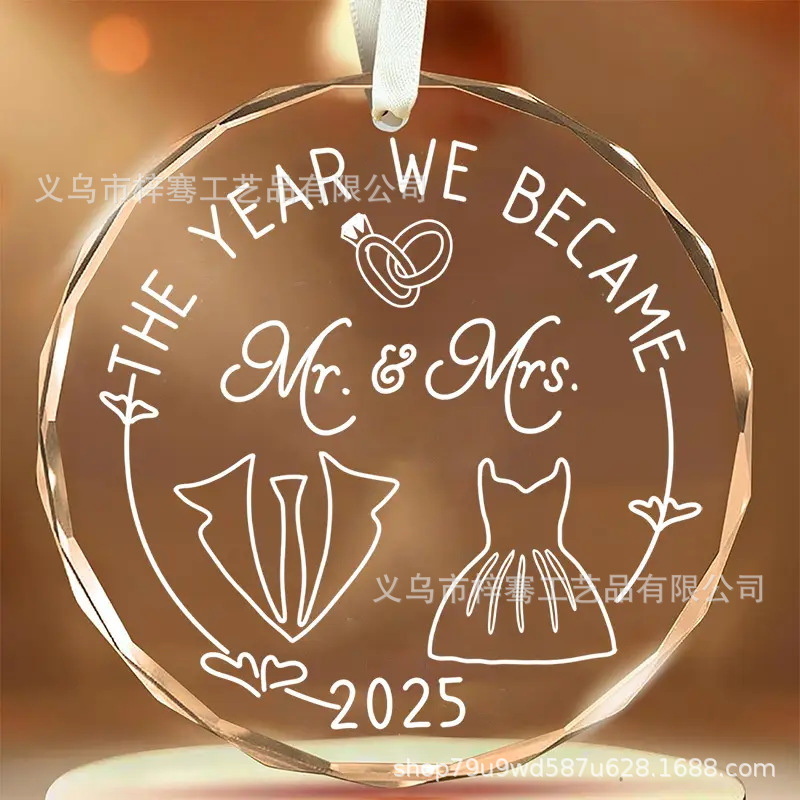 跨境2025水晶玻璃挂饰 结婚周年礼物 圣诞树装饰 节日饰品