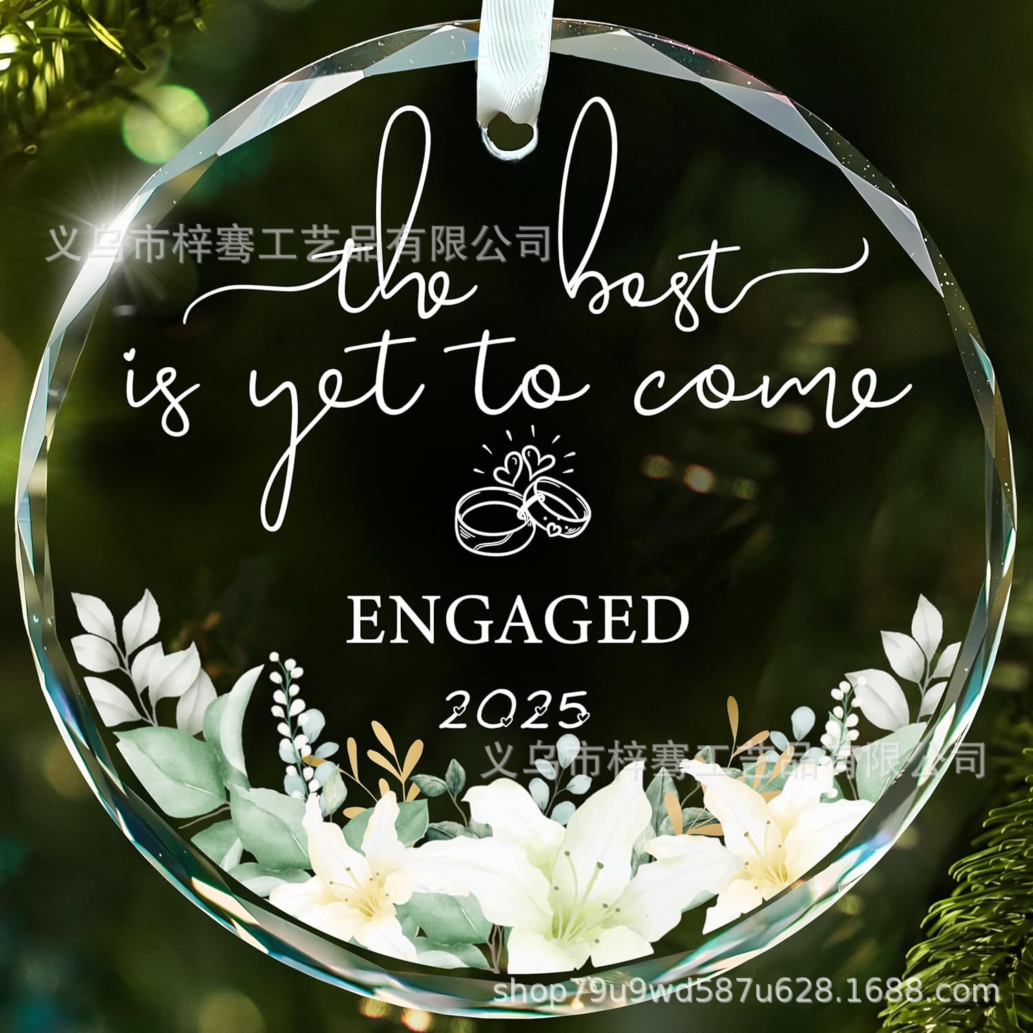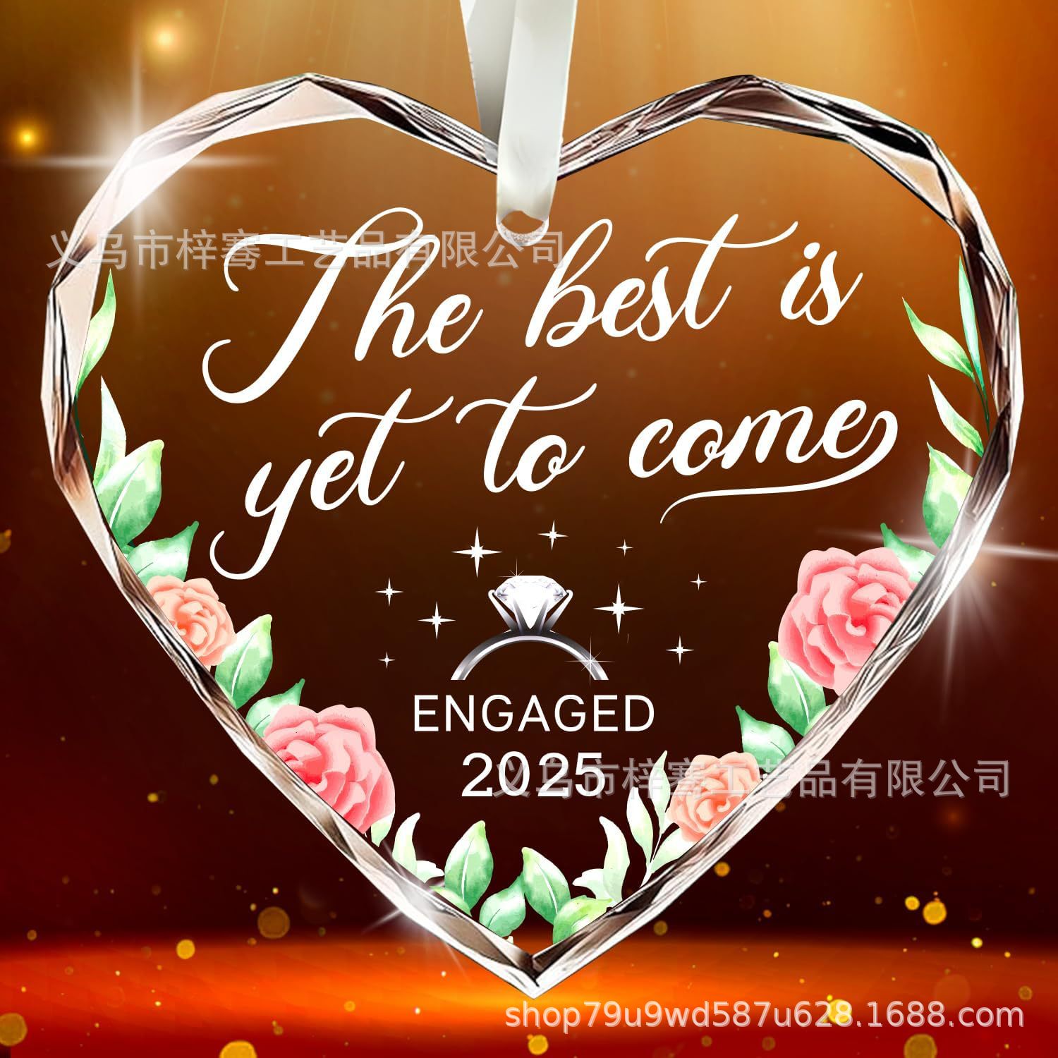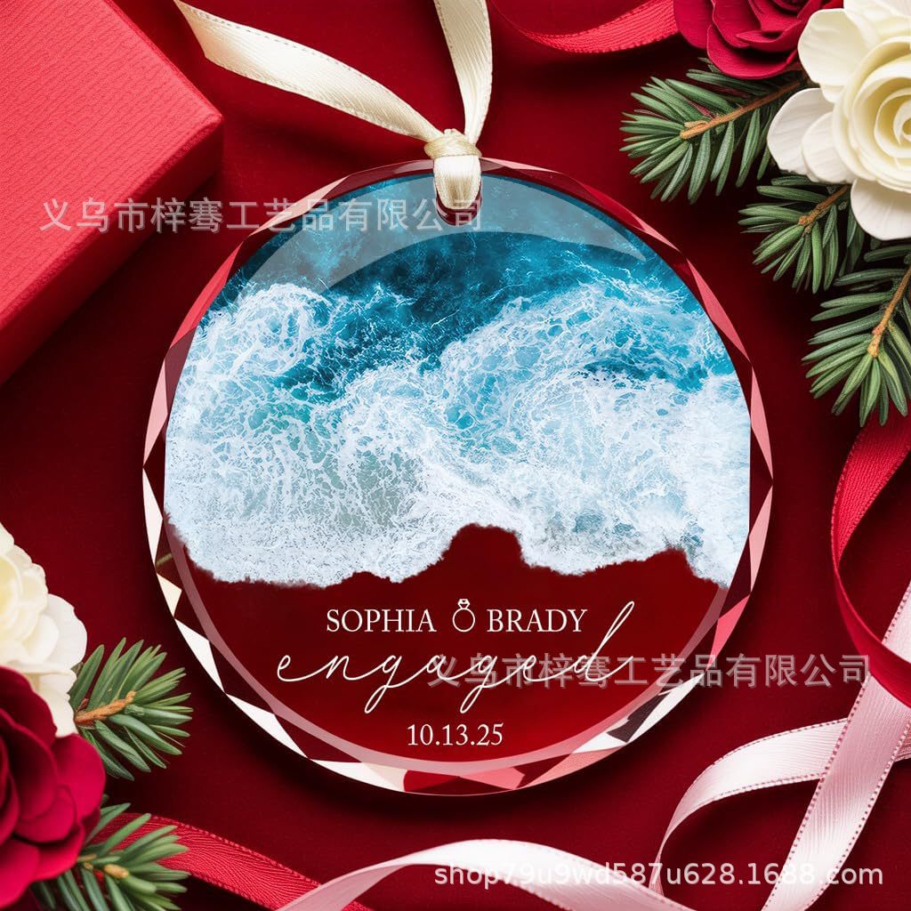 跨境圣诞节订婚2025年玻璃装饰品情侣结婚礼物家居万圣节感谢挂件