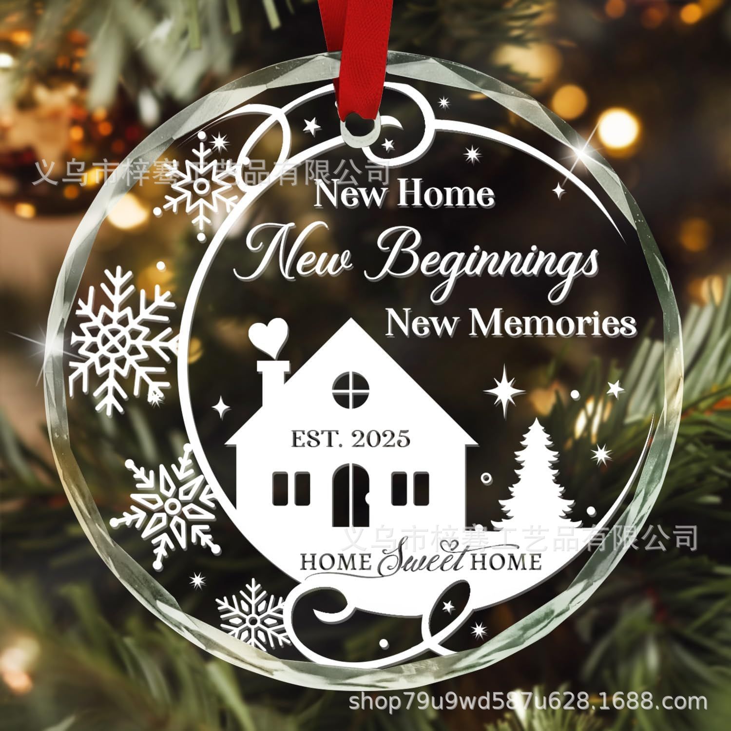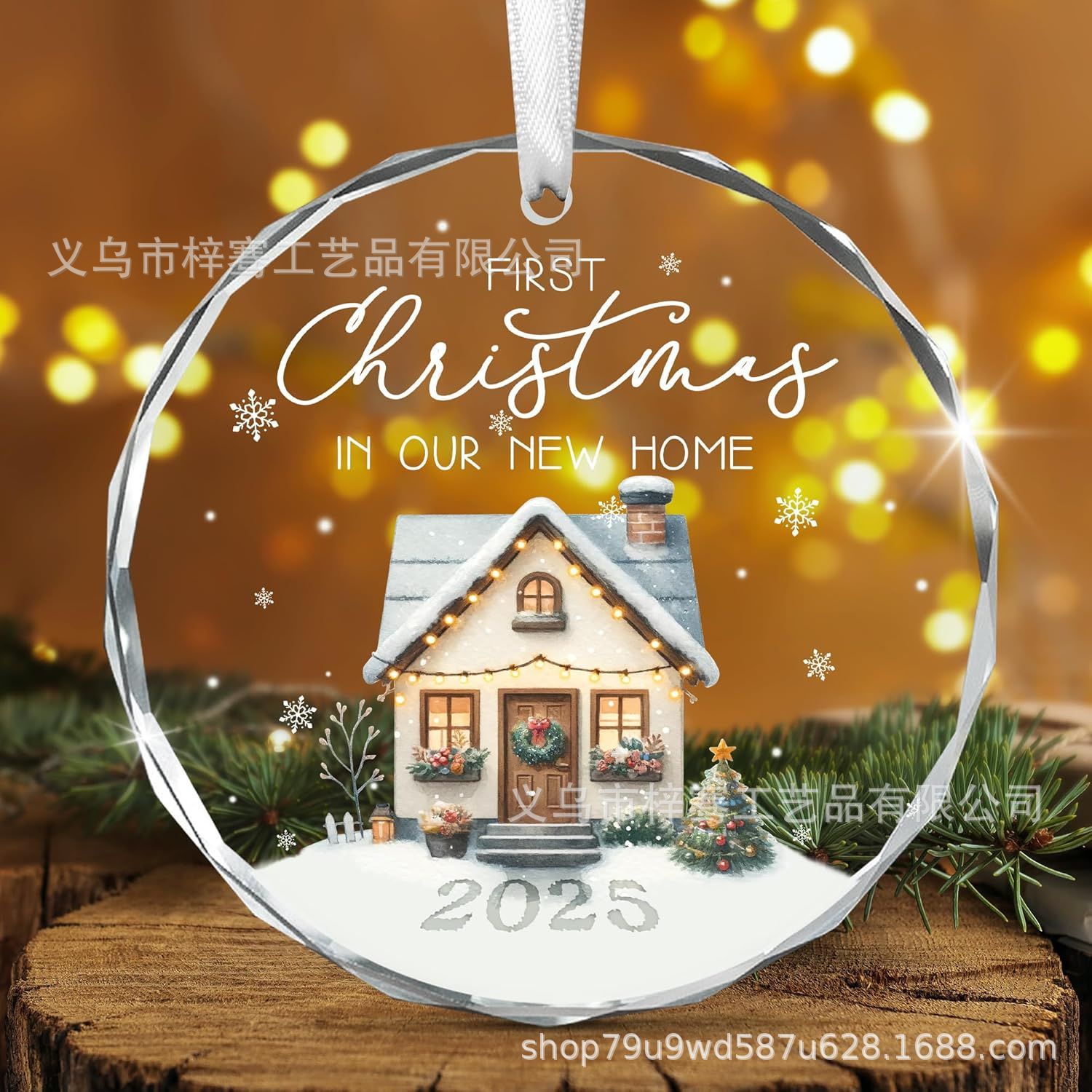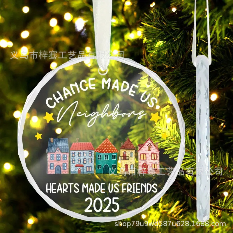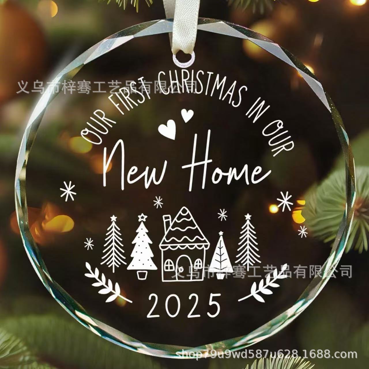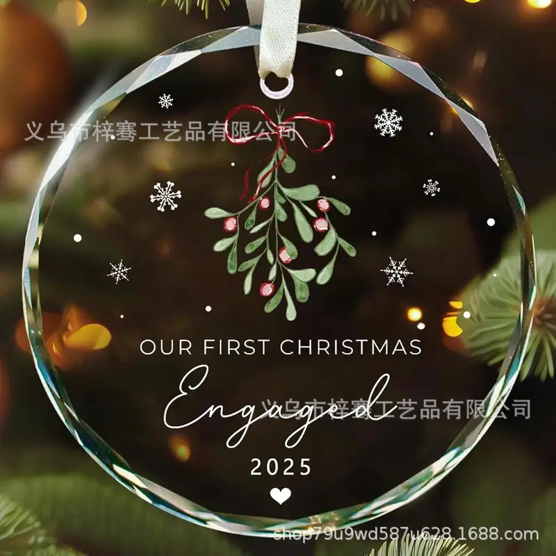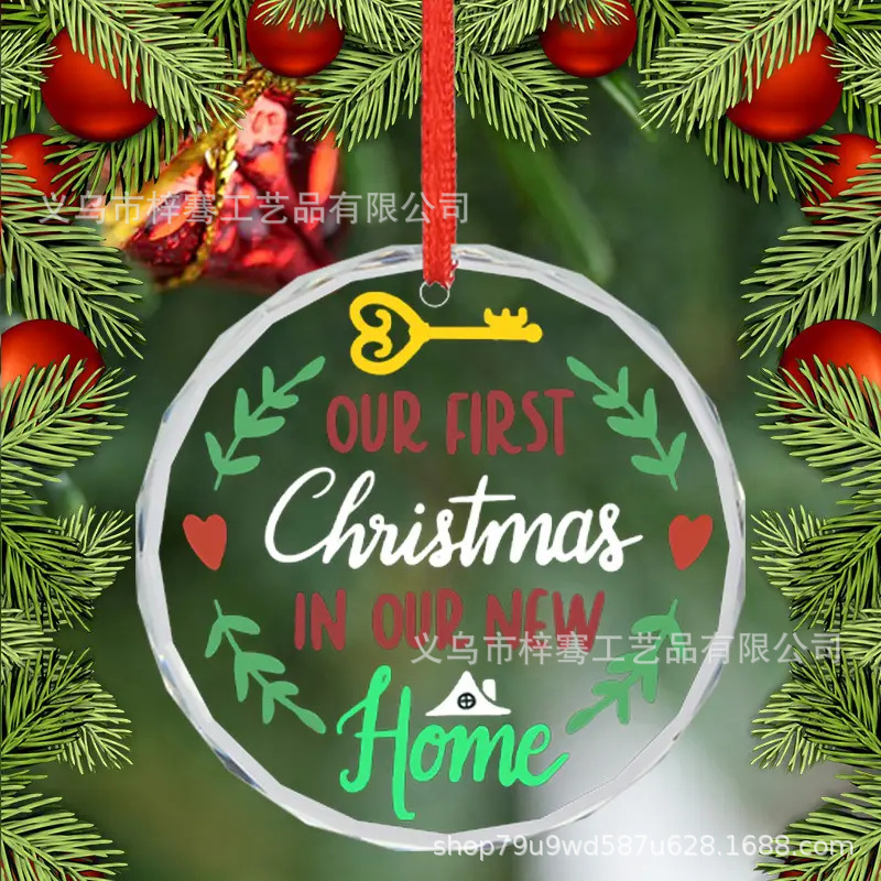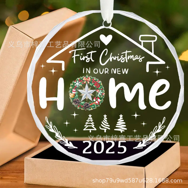 跨境新品2025圆形水晶玻璃挂件圣诞节送新婚朋友结婚搬新家装饰品