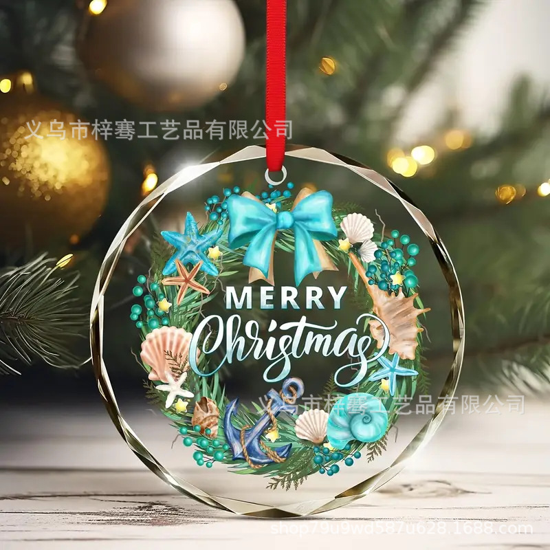 跨境2025年圣诞节水晶玻璃挂件家居主题海滩风格圣诞装饰纪念品