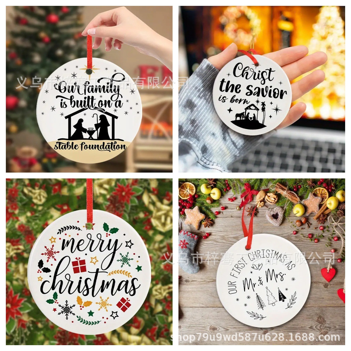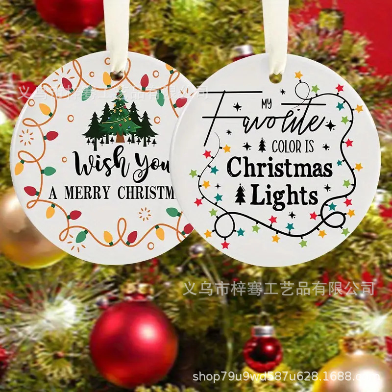 跨境爆款圆形陶瓷圣诞节礼物圣诞树挂装饰及配件节日家居装饰礼物