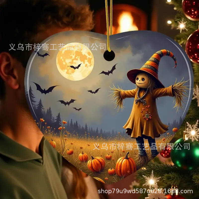跨境新品2025年圆形心形陶瓷挂件万圣节圣诞节创意装饰品挂件礼物