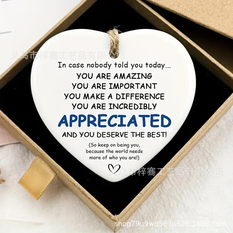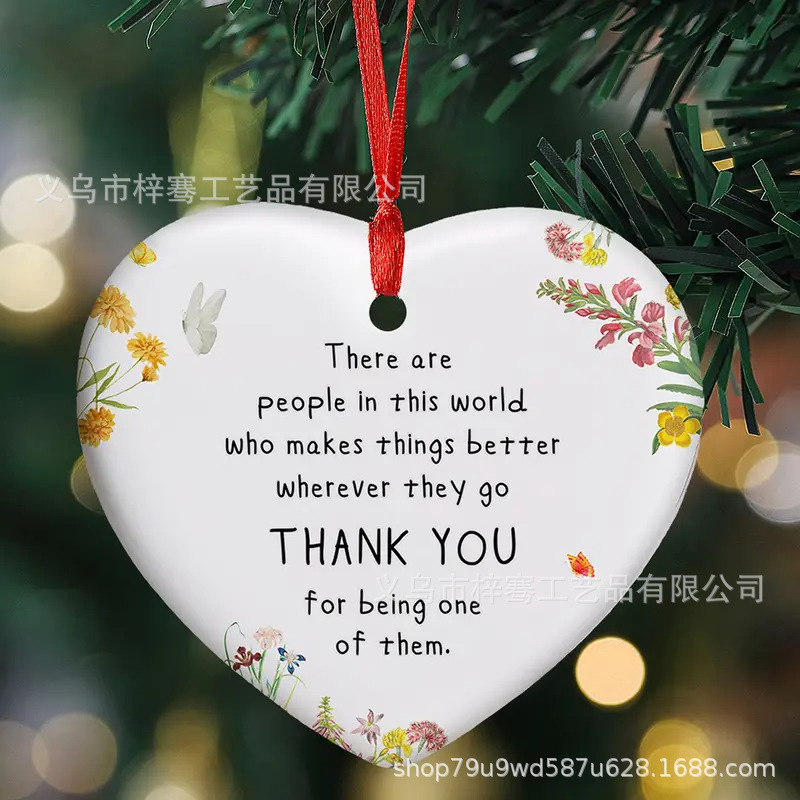 跨境2025创意心形陶瓷鼓舞人心吊坠挂件圣诞节送亲人朋友同事礼物