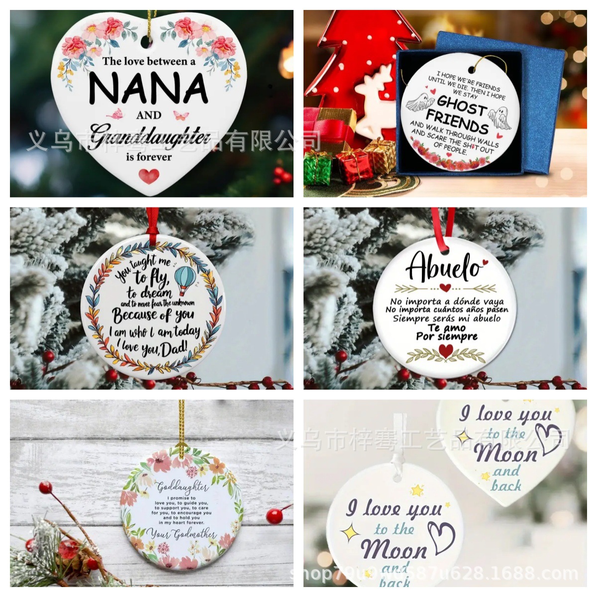 跨境新款周年结婚纪念日礼物送给她他妻子丈夫圣诞陶瓷饰品挂件.