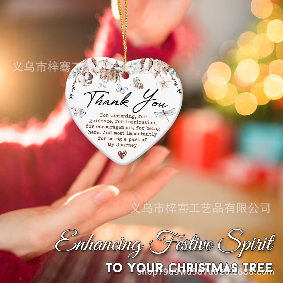 2025陶瓷圣诞饰品Thank You礼物生日感谢送同事朋友圣诞树装饰品