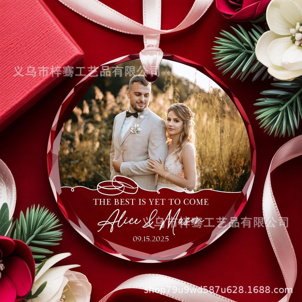跨境亚马逊水晶挂饰礼物定制创意结婚照片文字室内装饰品圣诞挂件