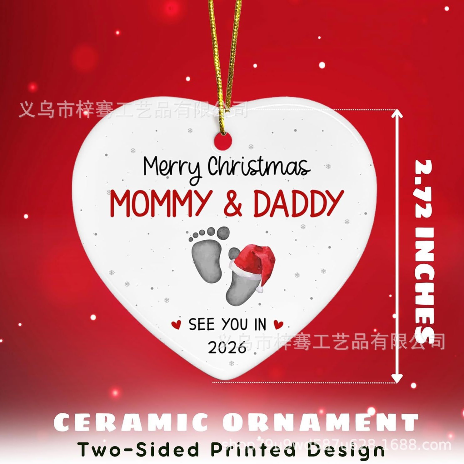 2025新款亚马逊心形圣诞节装饰庆祝新人怀孕的挂件双面印陶瓷挂饰