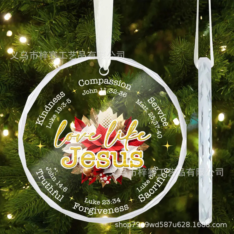 亚马逊多款新款水晶玻璃挂件圆形心形双面印刷圣诞节挂件装饰品