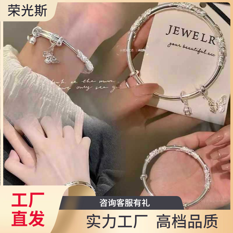 足银实心猫纯银手镯送女友繁花足银镯子不掉色情人节礼物