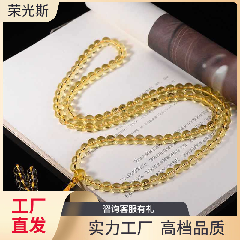 天然收藏级巴西黄水晶手链颗佛珠念珠多圈手串男女款水晶饰品