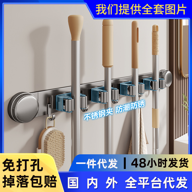 304不锈钢免钉打孔两用拖把壁挂夹浴室卫生间拖把挂钩扫把收纳架