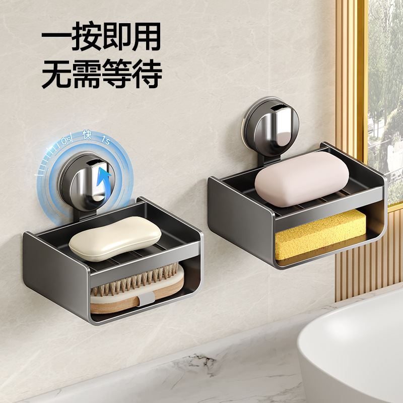 浴室吸盘肥皂盒子香皂置物壁架挂双层免打孔家用沥水盒卫生间纳盒