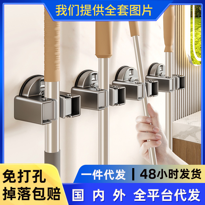 新款浴室吸盘拖把架可移动壁挂夹家用扫把免打孔厕所厨房门后收纳