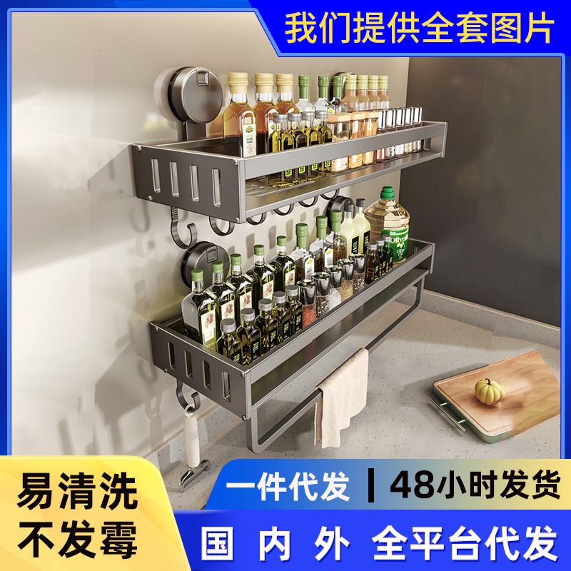一件代发厨房免打孔调料收纳置物架壁挂吸盘式厨具挂钩挂杆整理架