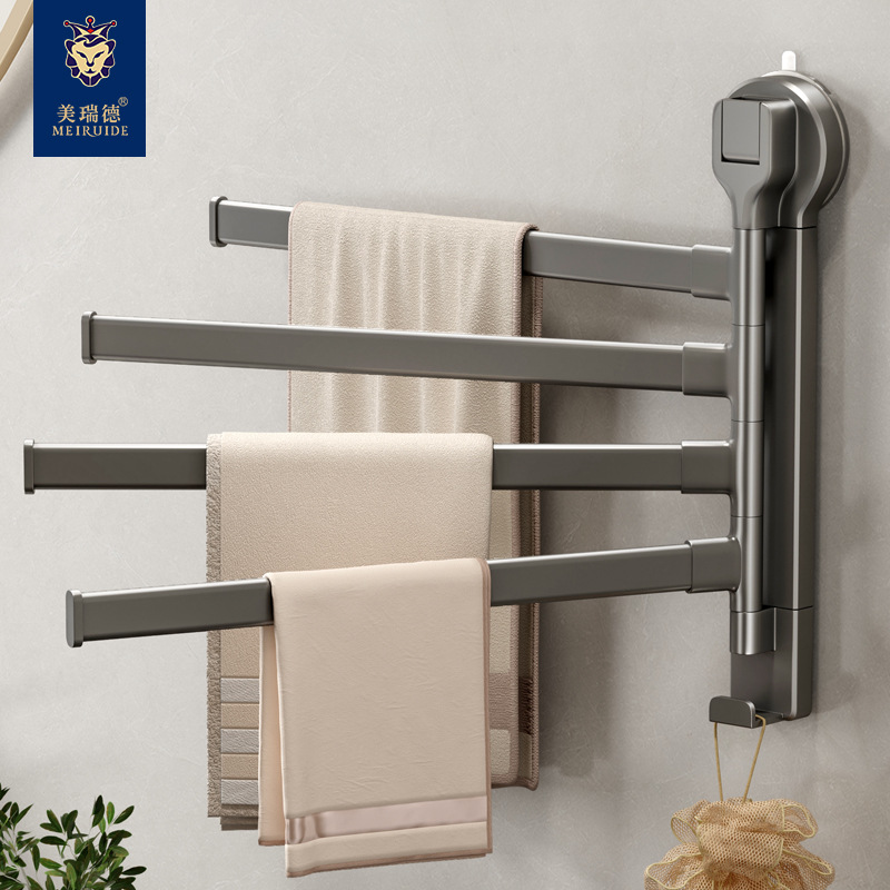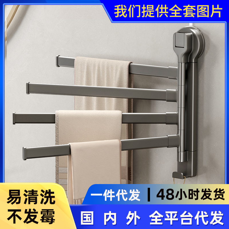 家用吸盘浴室卫生间旋转毛巾架壁挂太空铝免打孔多功能收纳架挂杆